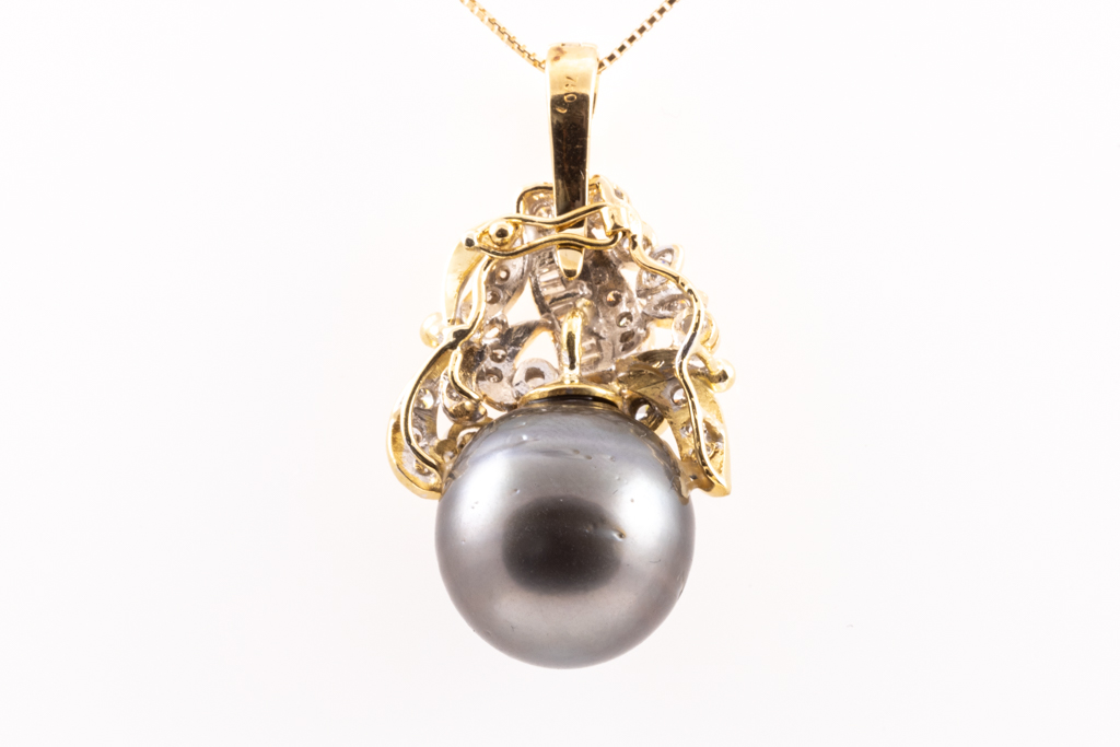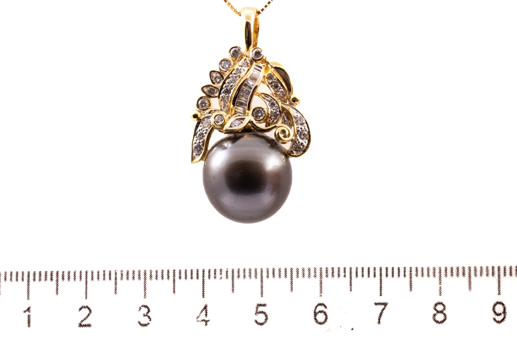 15.0mm Tahitian Pearl and Diamond Pendant
