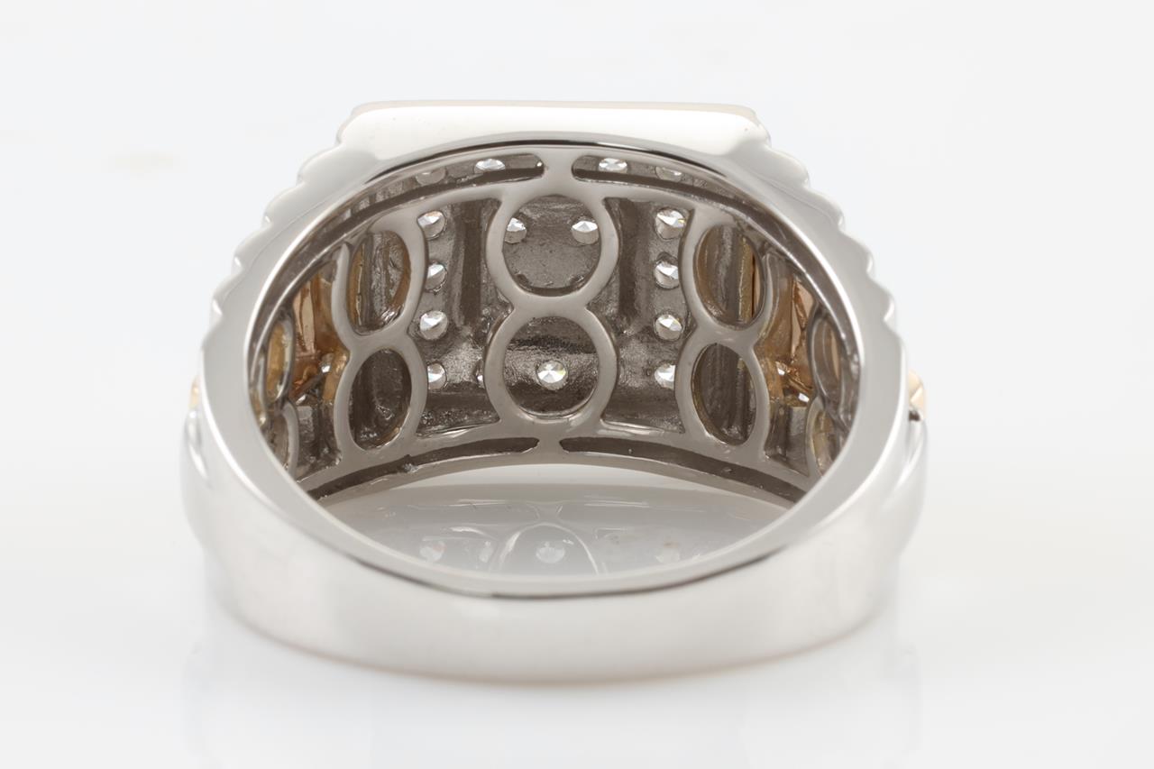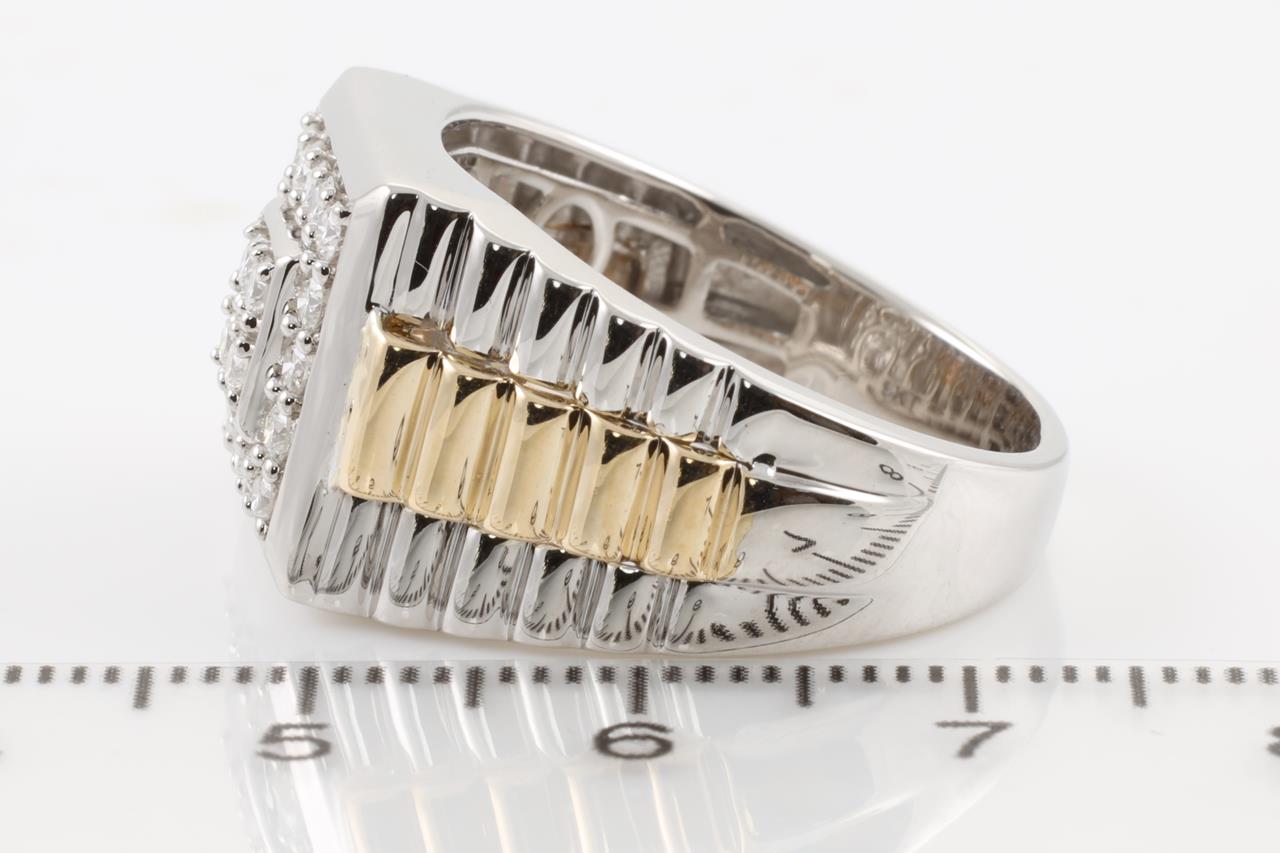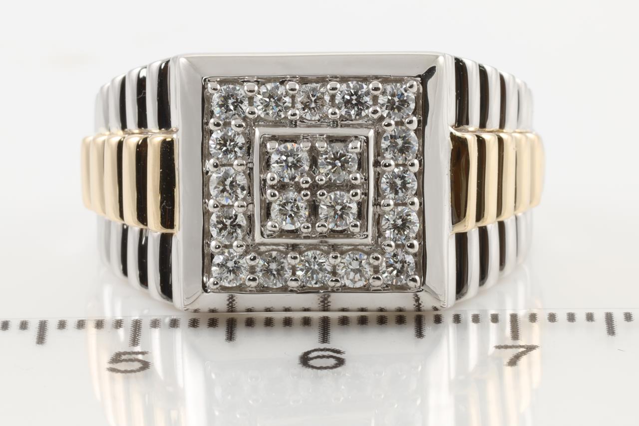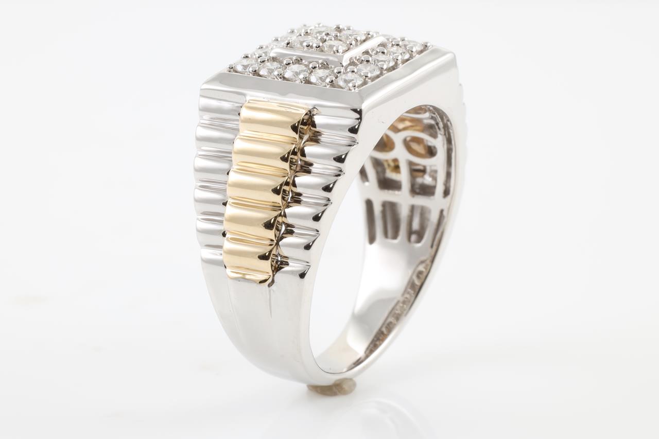 Diamond Men's ring with round Diamonds totalling 0.76cts (Estimated grading: H-I SI). 9ct White gold and Yellow gold. Ring size V. Weight: 10.3g (New).