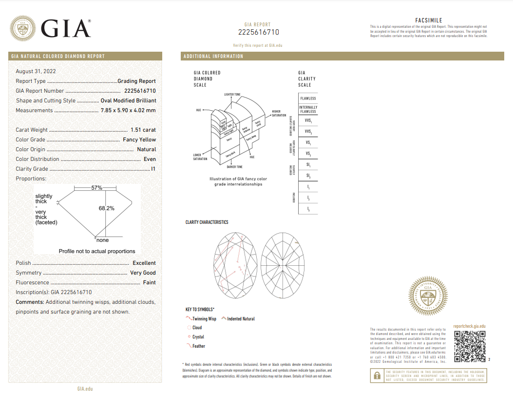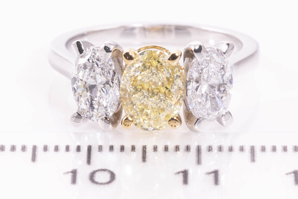 Diamond ring with centre oval shape Diamond of 1.51ct (with GIA report graded as Natural Fancy Yellow Even P1 #2225616710)