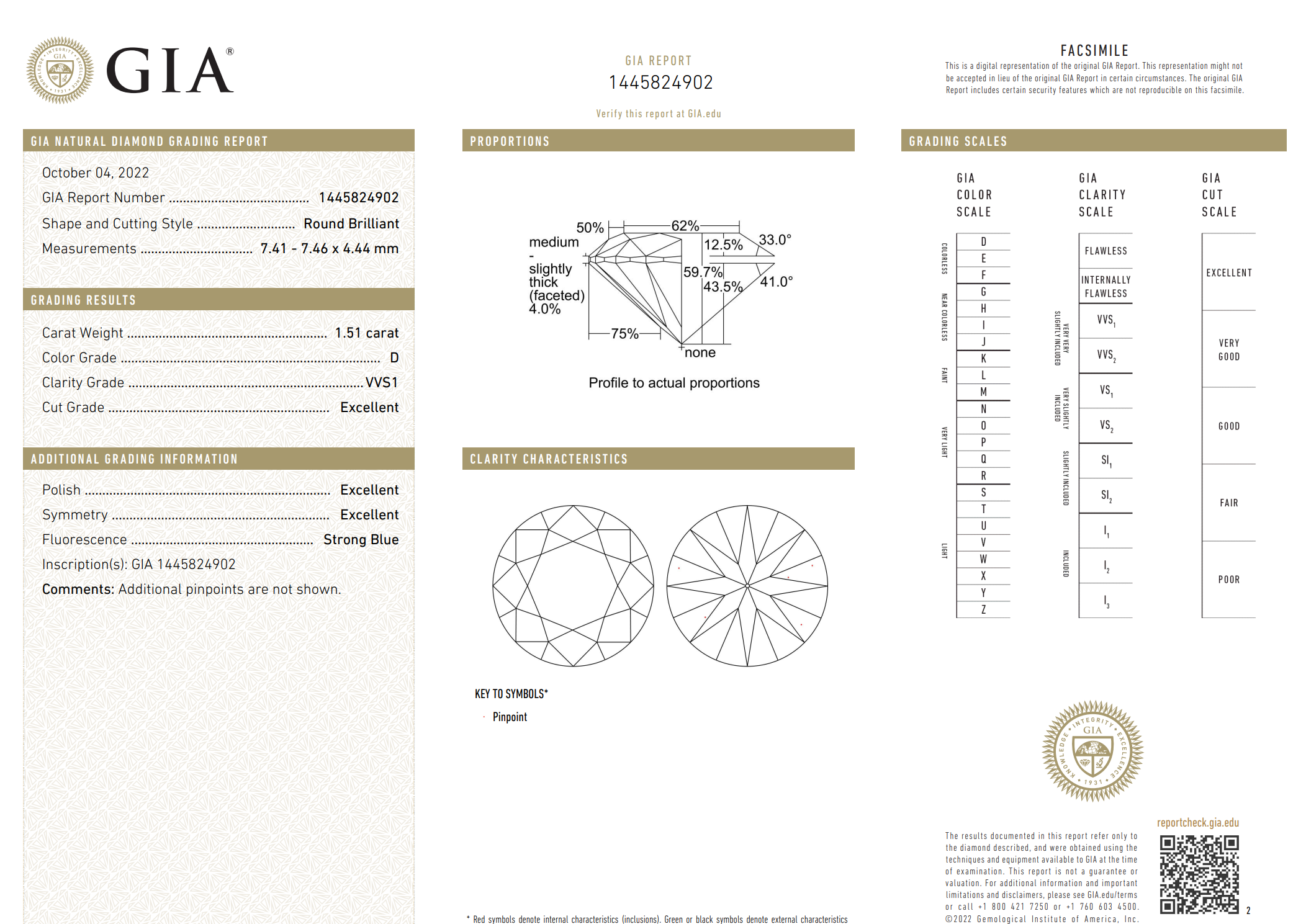 A loose round brilliant cut Diamond of 1.51ct (with GIA report graded as D VVS1 #1445824902