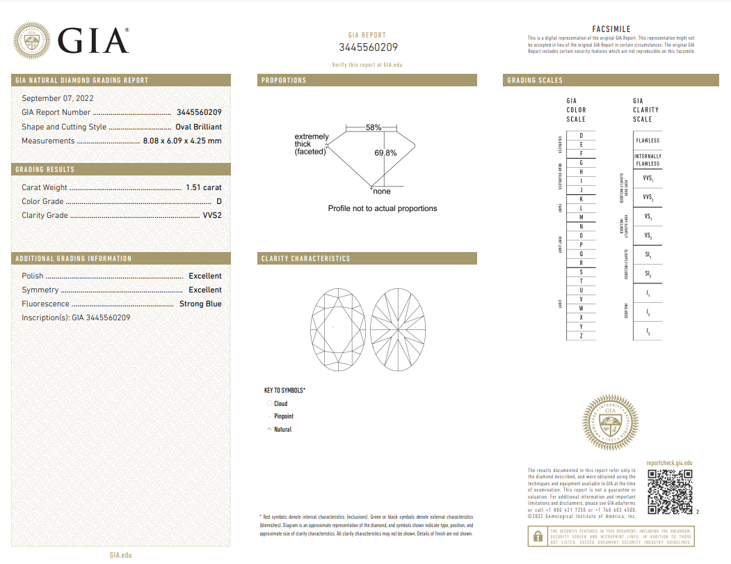 A loose oval shape Diamond of 1.51ct (With GIA report graded as D VVS2 #3445560209). (New)