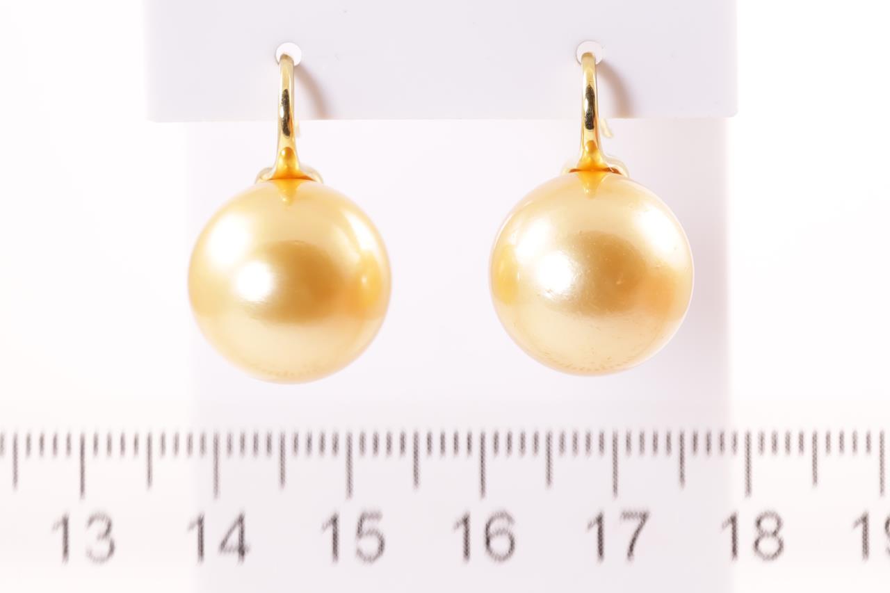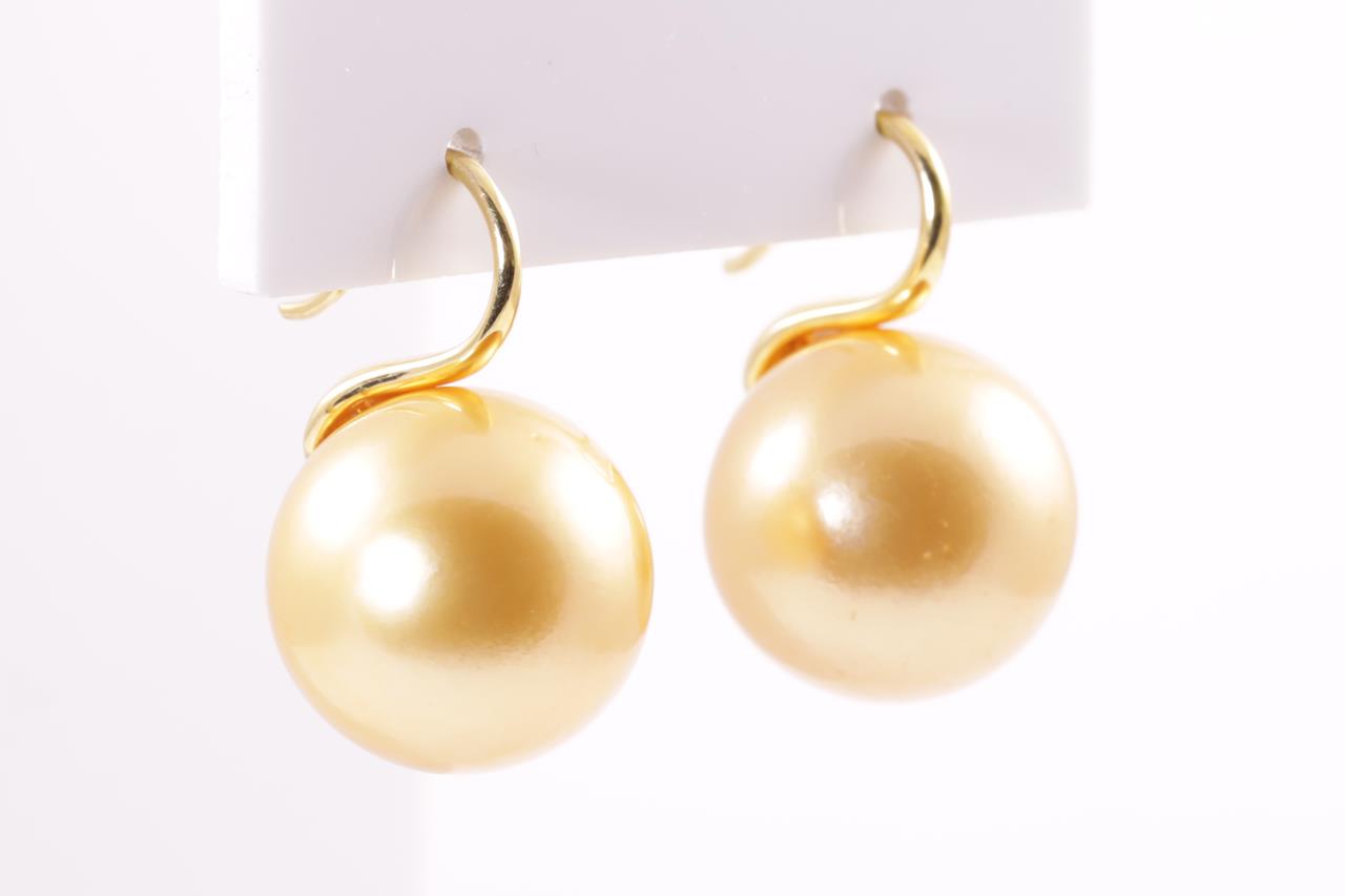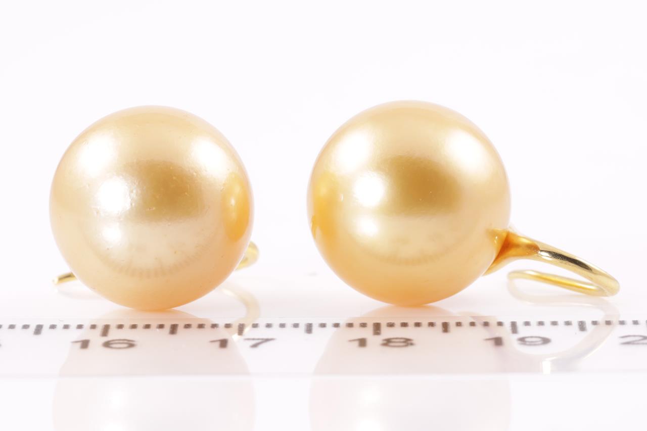 Pearl Earrings with Golden South Sea Pearls of 15.3mm. 18ct yellow gold. Weight 12.5g. (Pre-owned)
