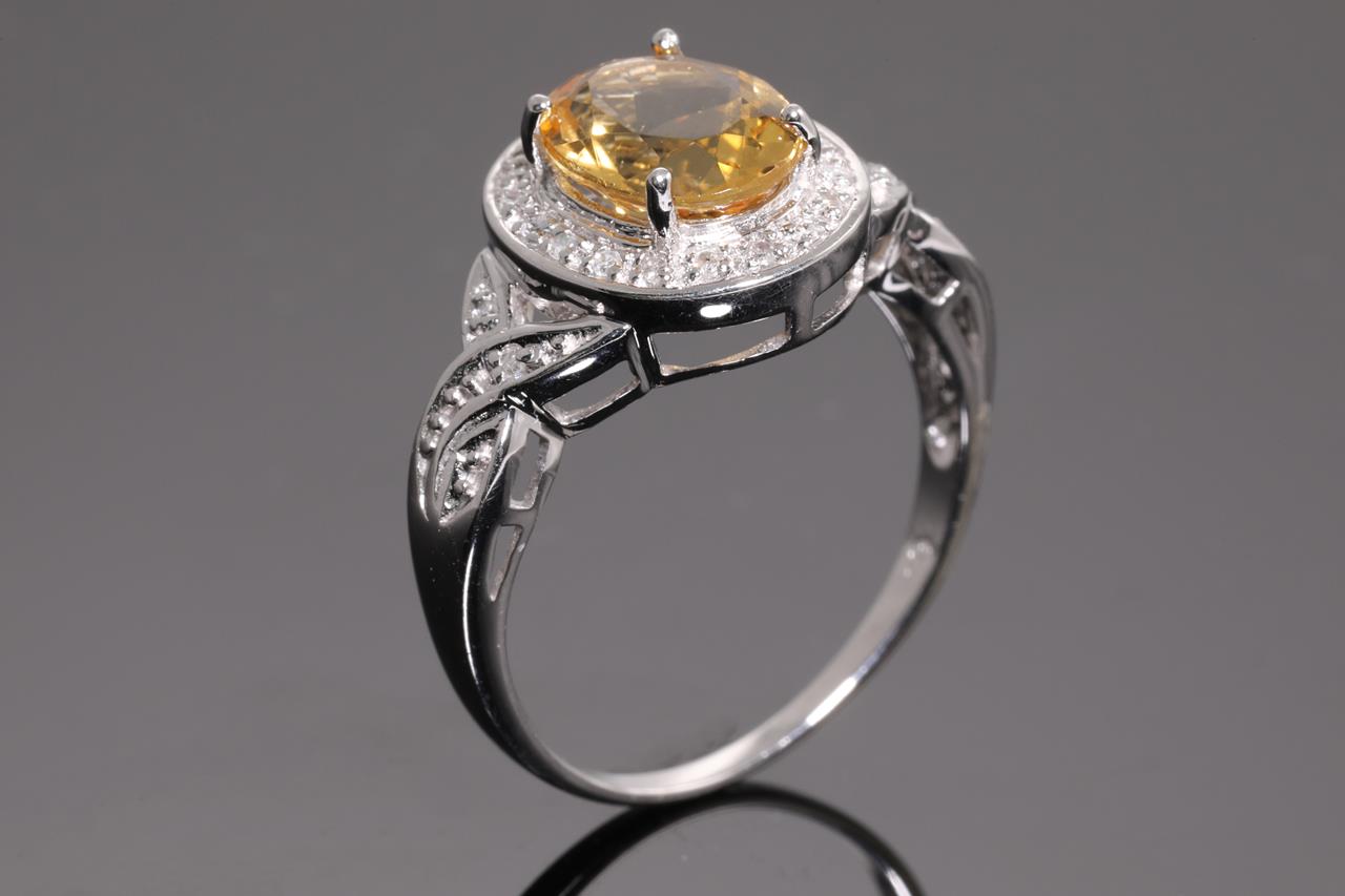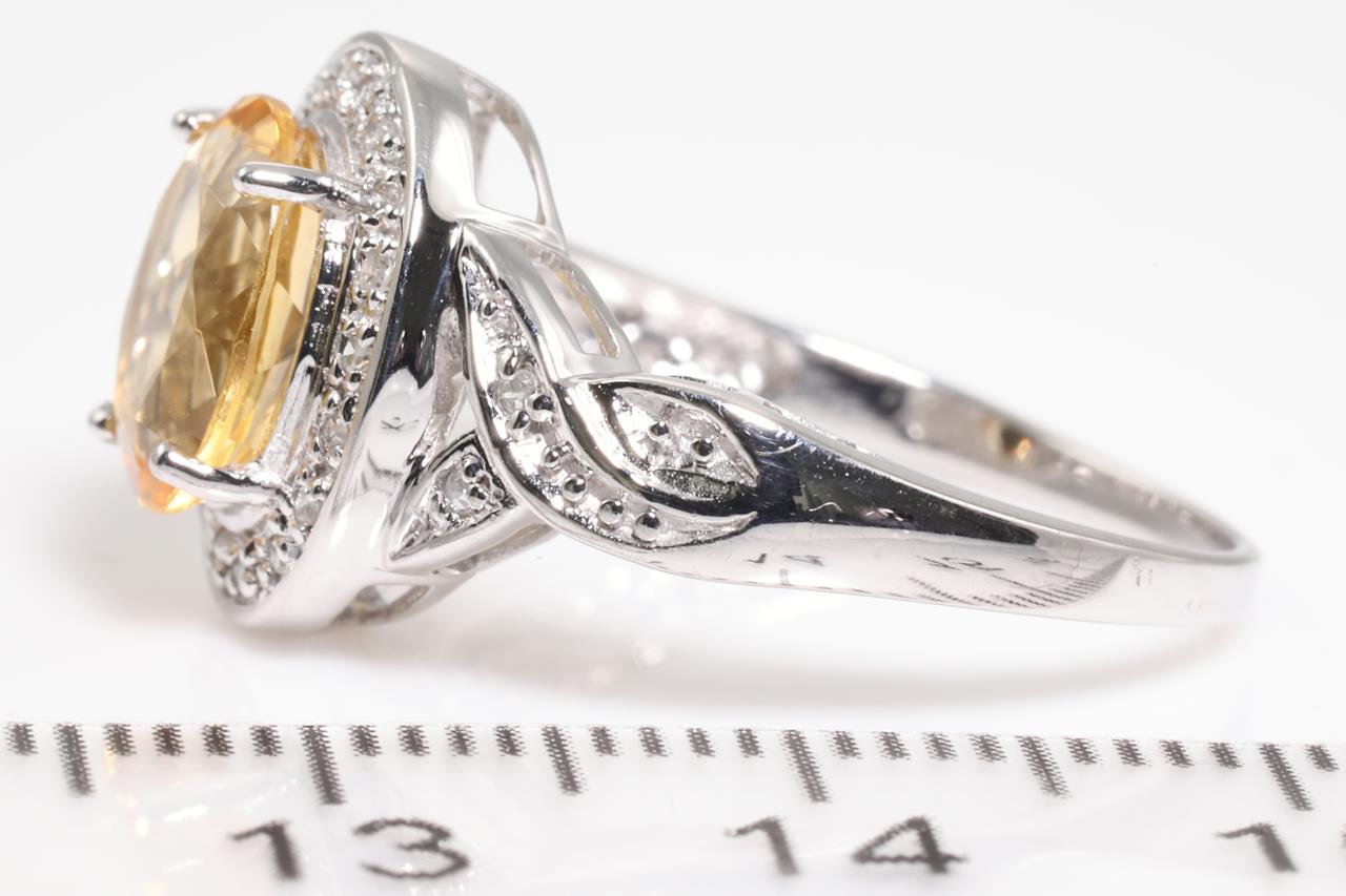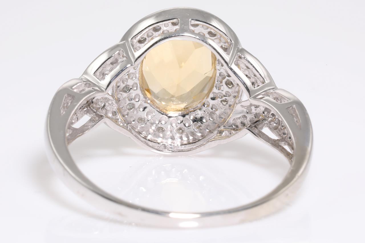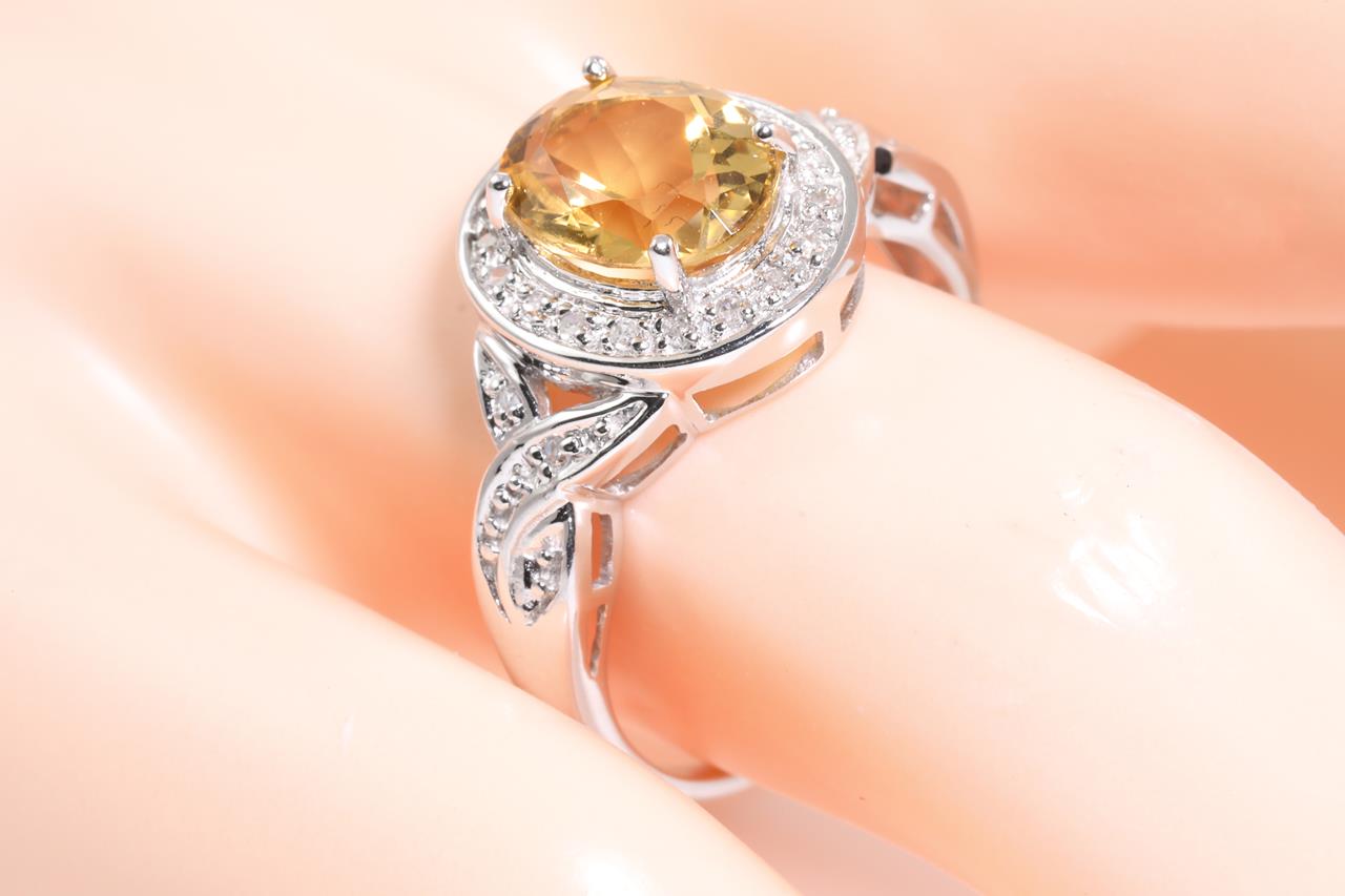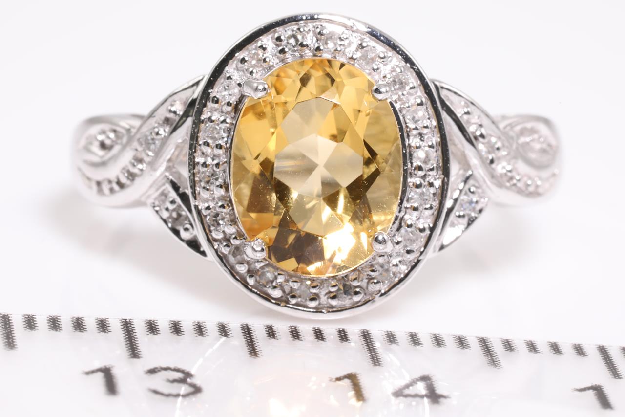 Citrine and Diamond Ring with oval cut Citrine of approximately 1.60ct and round Diamonds totalling approximately 0.10cts. 9ct white gold. Ring size N1/2. Weight 2.7g. (Pre-owned)