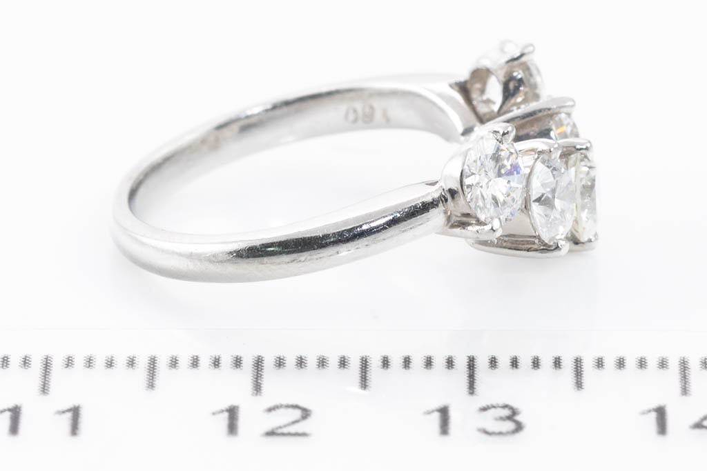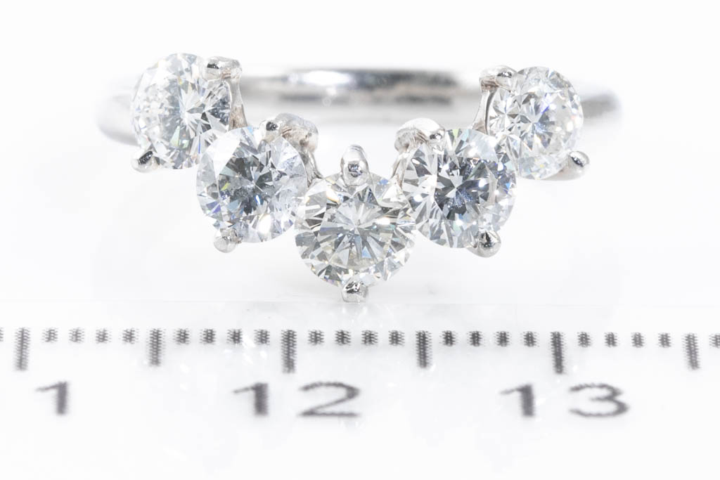 Diamond curved eternity ring with 5P round Diamonds totalling 1.60cts (Estimated grading: H-I SI). Platinum. Ring size K1/2. Weight: 5.6g. (Pre-owned)