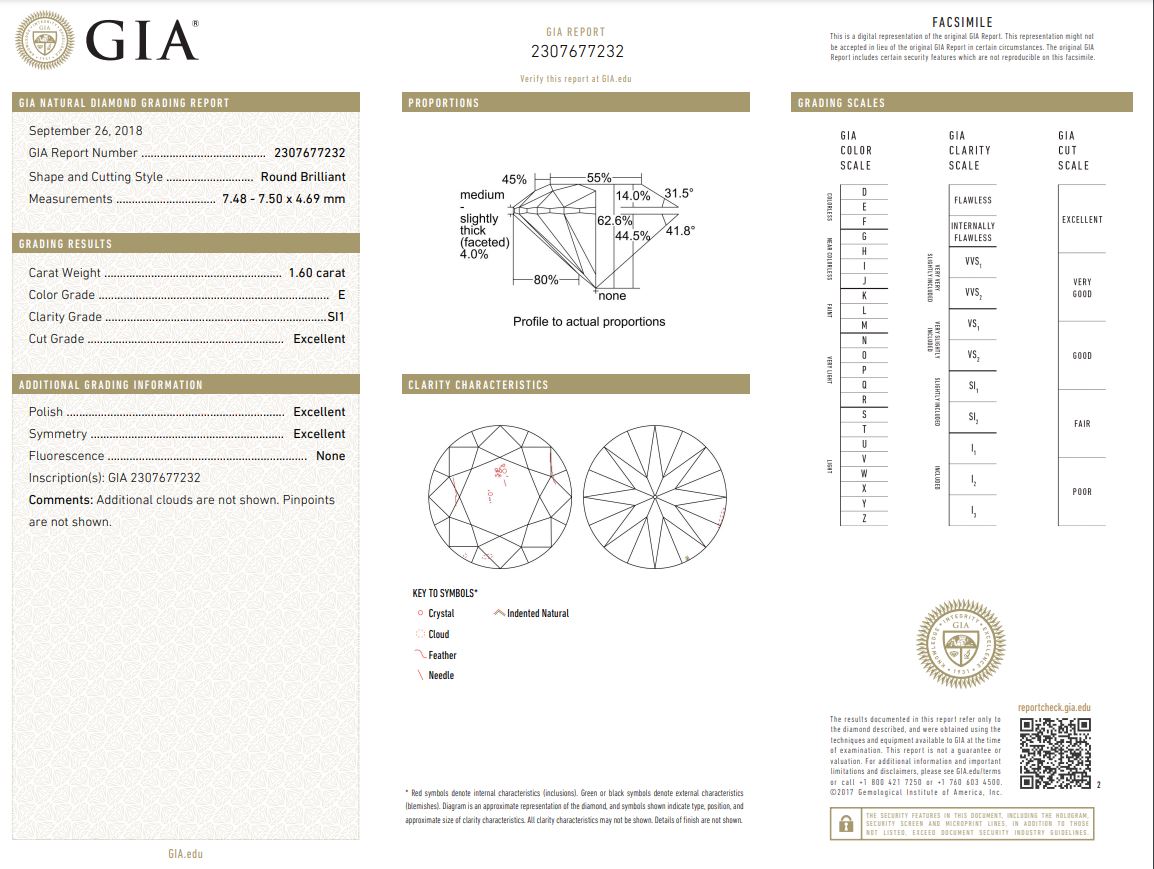 1.60ct Loose Round Diamond GIA E SI1
