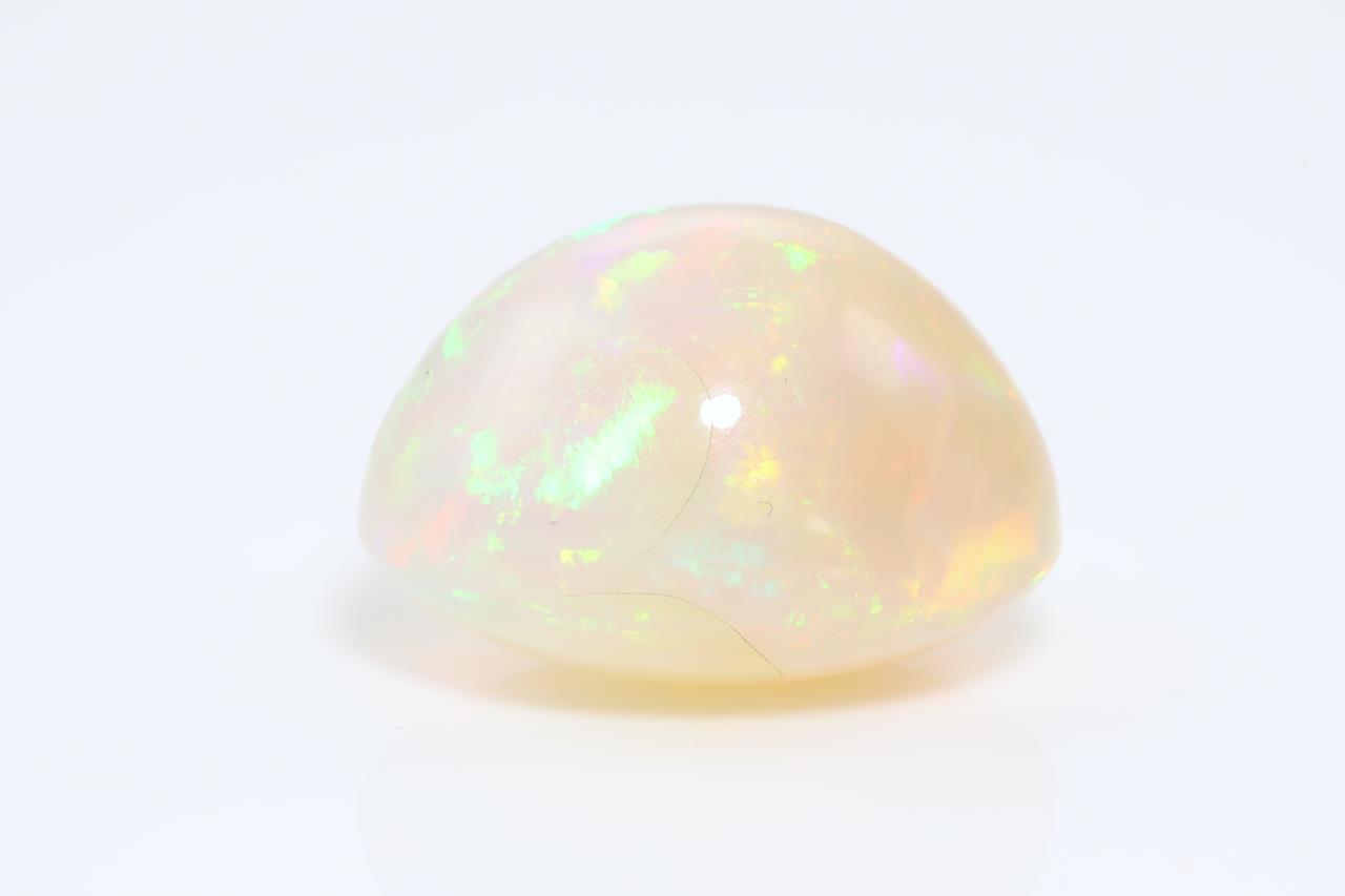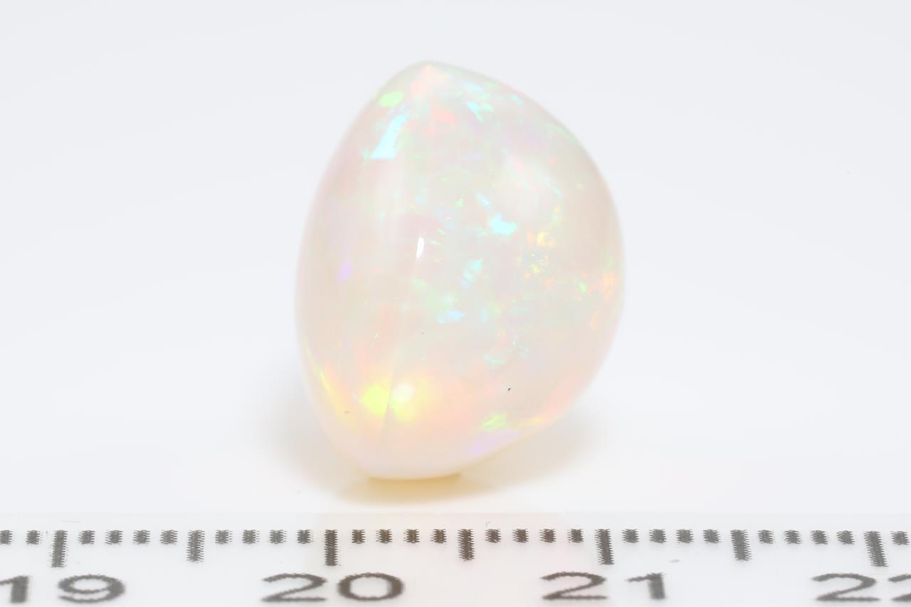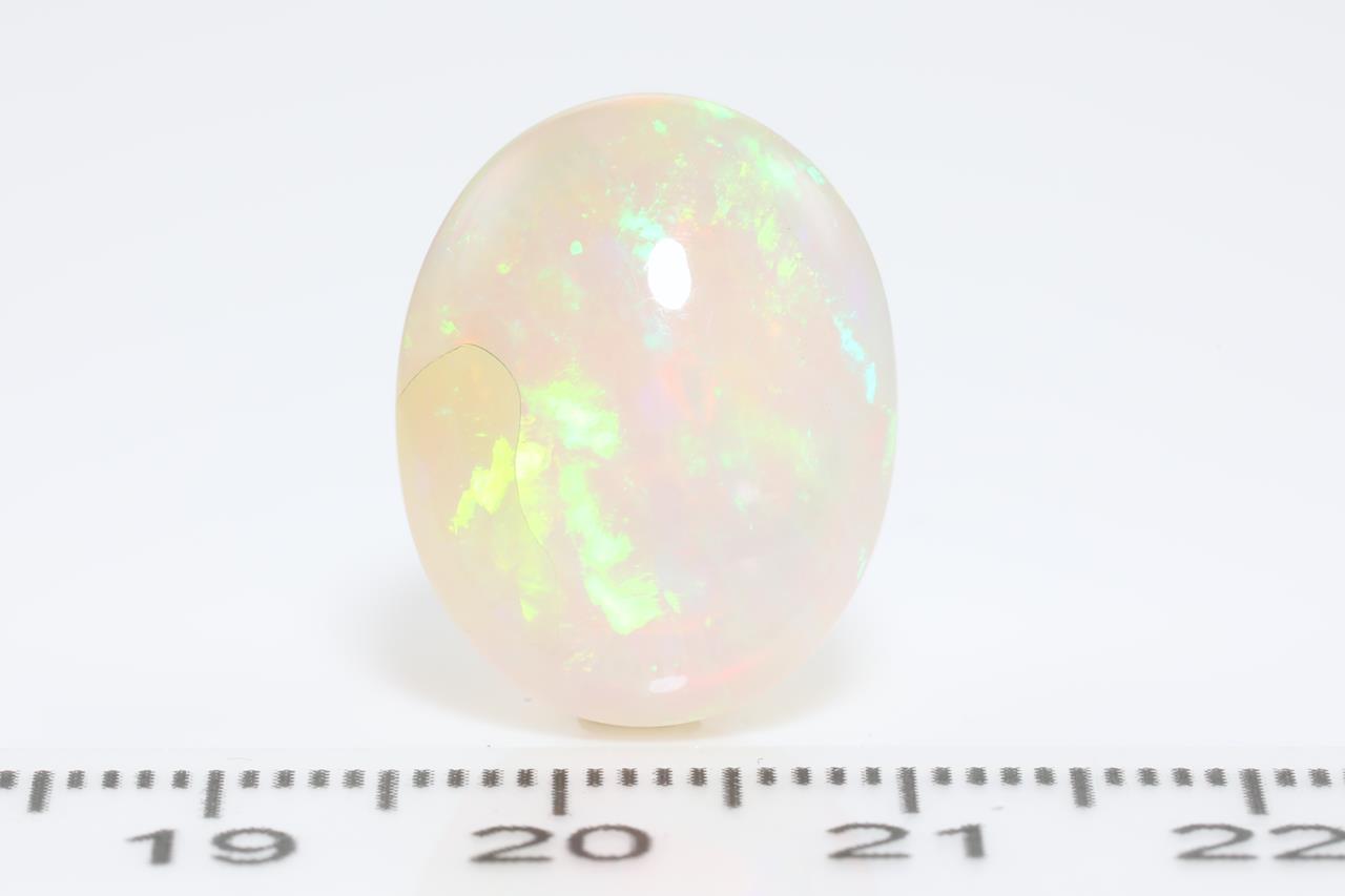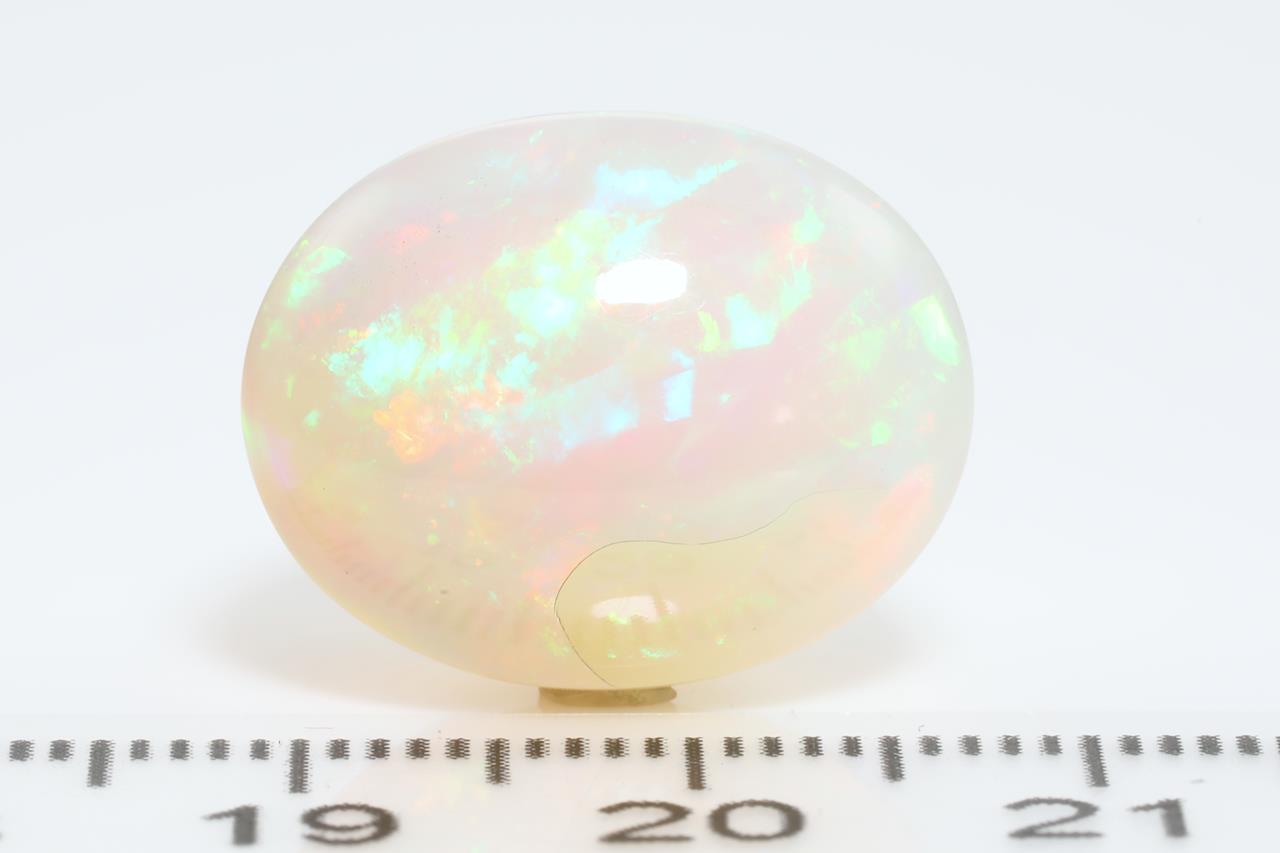 A loose oval cabochon cut white Opal of 16.13ct. Approximate size: 18.6mm x 14.8mm x 12.5mm. (As New)