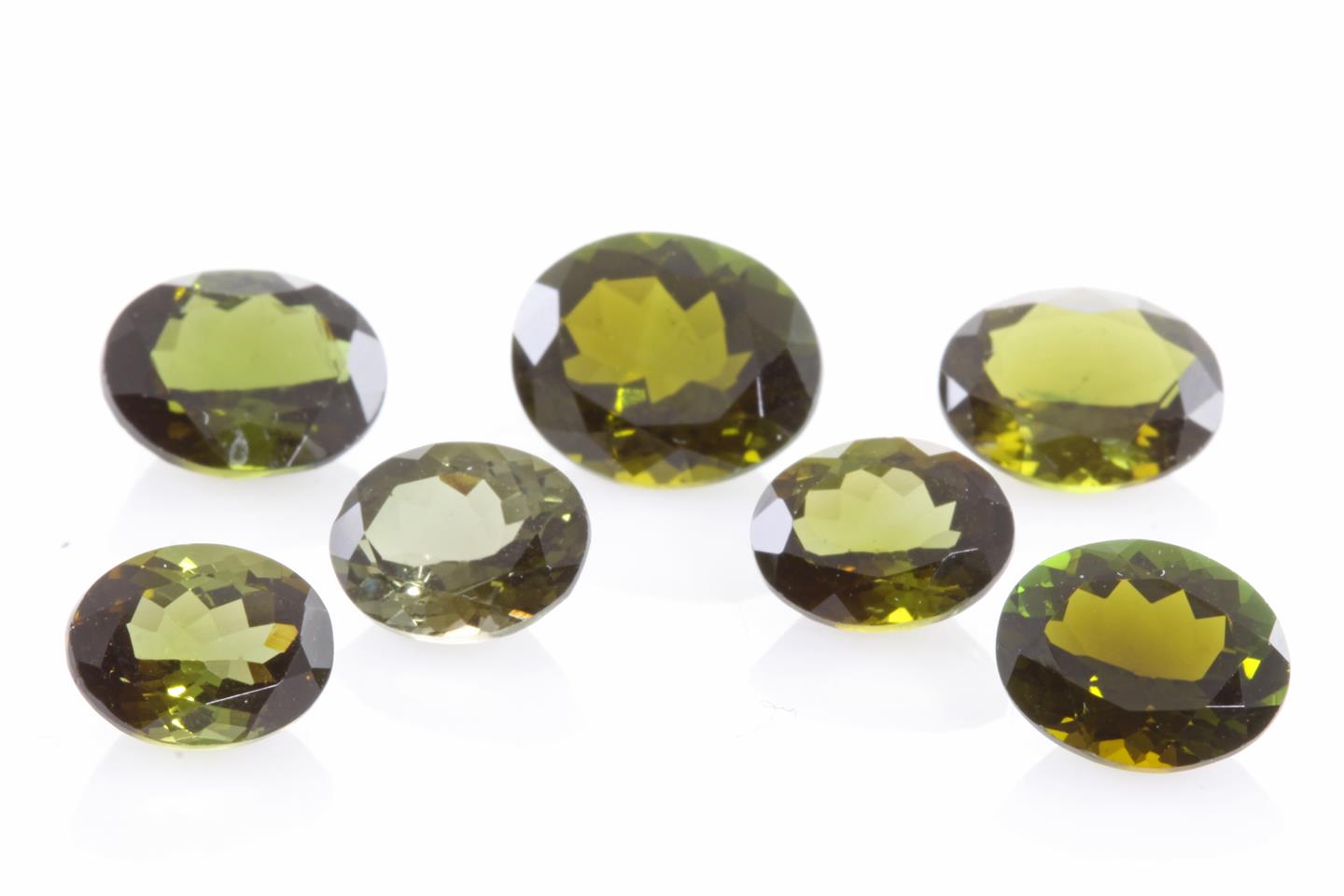 A loose parcel of oval shape mixed size olive colour Tourmalines totalling 16.75cts. (New)