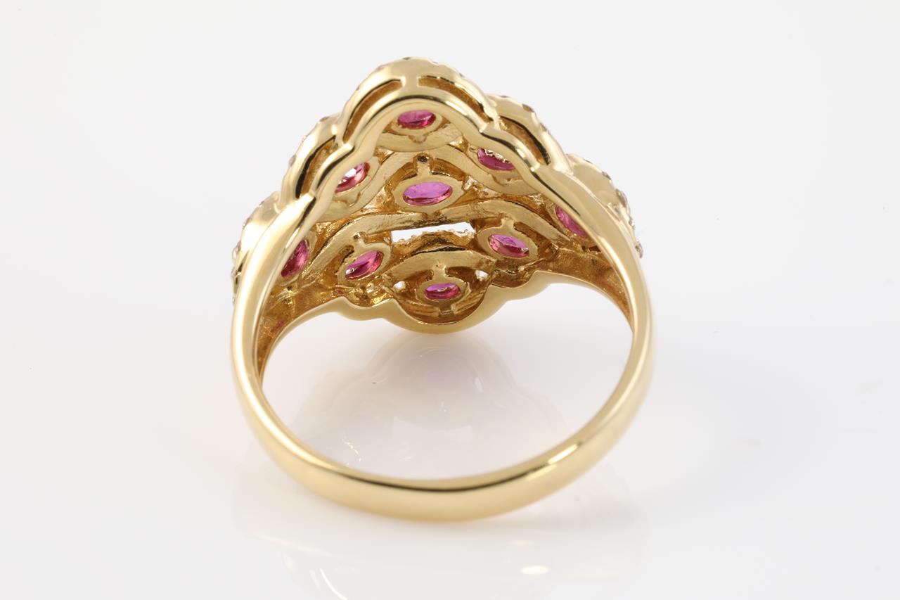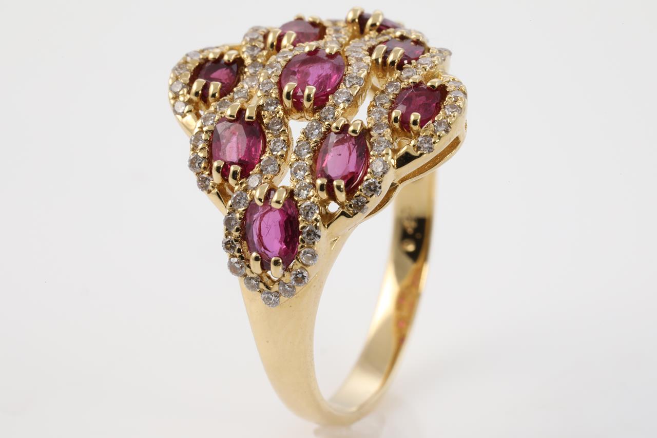 Ruby and Diamond ring with oval shape Rubies totalling 1.67cts and Diamonds totalling 0.43cts (Estimated grading: H-I SI-P1). 18ct white gold. Ring size O½. Weight: 5.9g (Pre-owned)