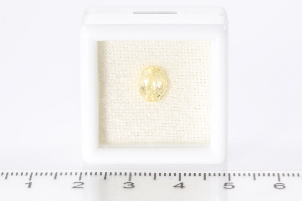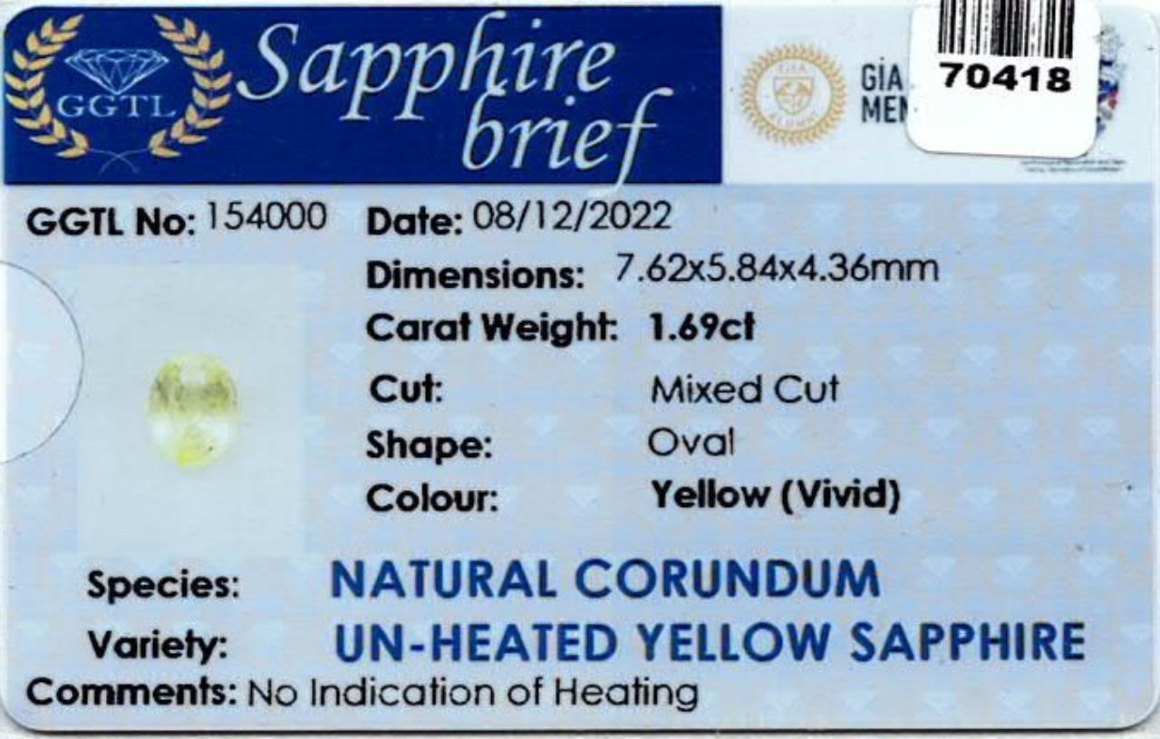 Loose oval cut yellow unheated Sapphire of 1.69ct (with gem report). (As New)