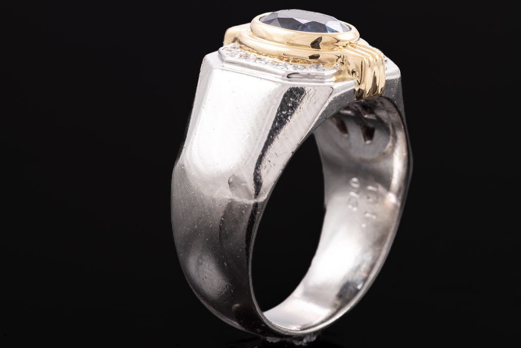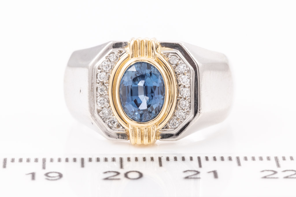 1.71ct Sapphire and Diamond Mens Ring