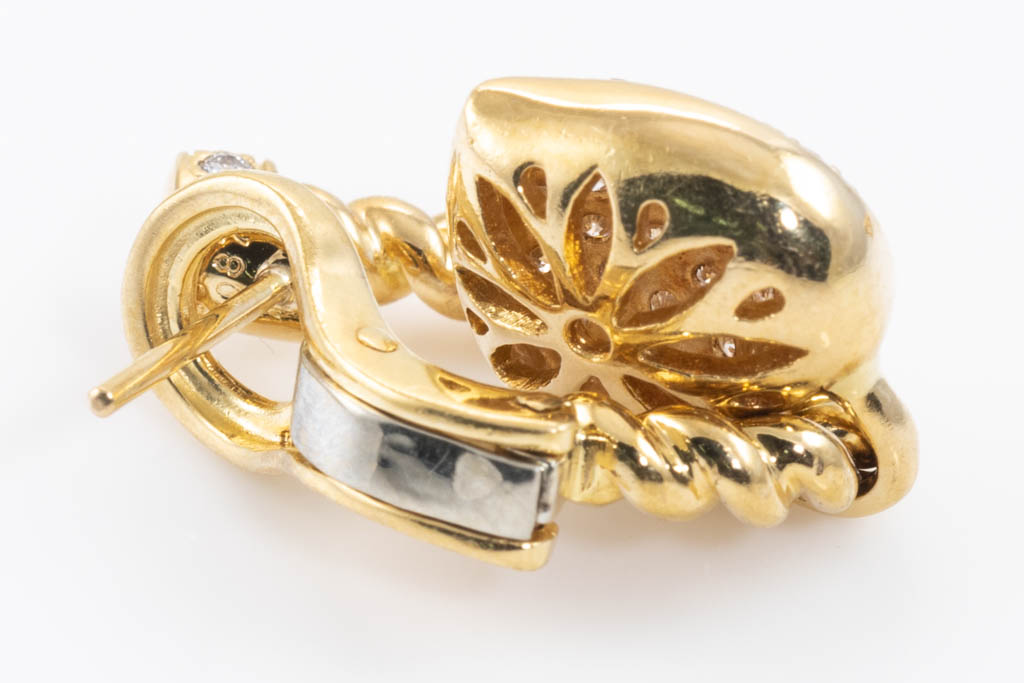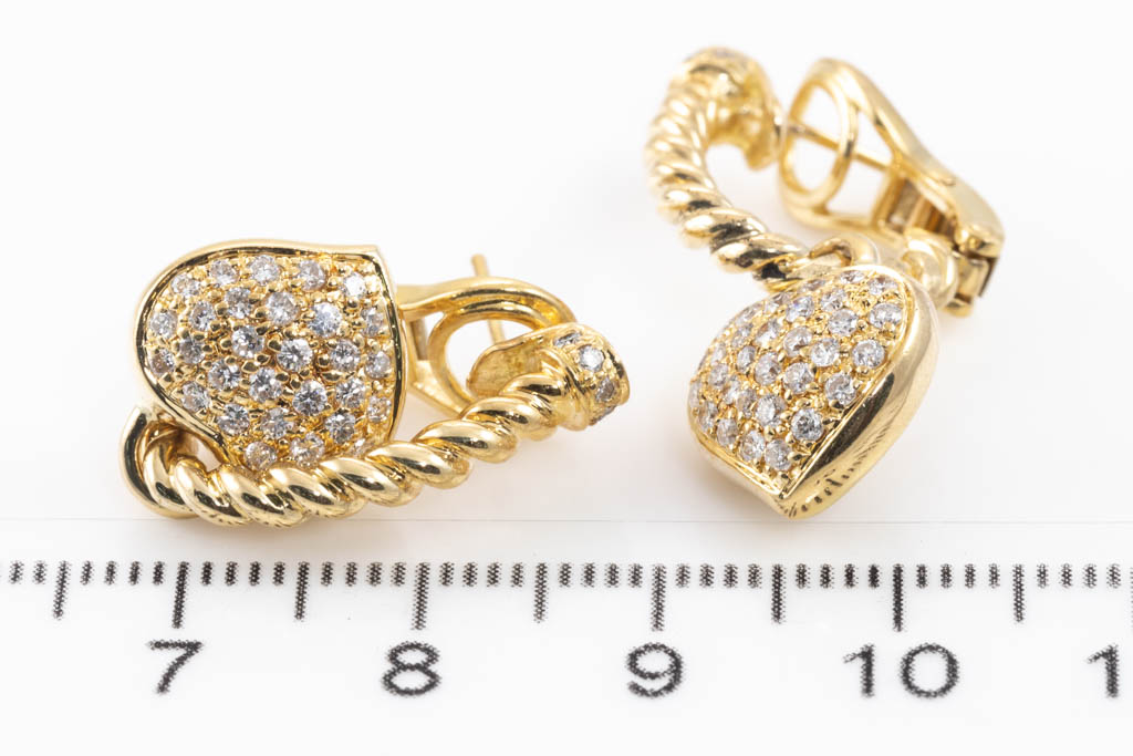 Diamond Heart design clip-on earrings (for pierced ears) with round Diamonds totalling 1.74cts (Estimated grading: H-I SI). 18ct yellow gold. Weight: 13.6g. (Pre-owned)