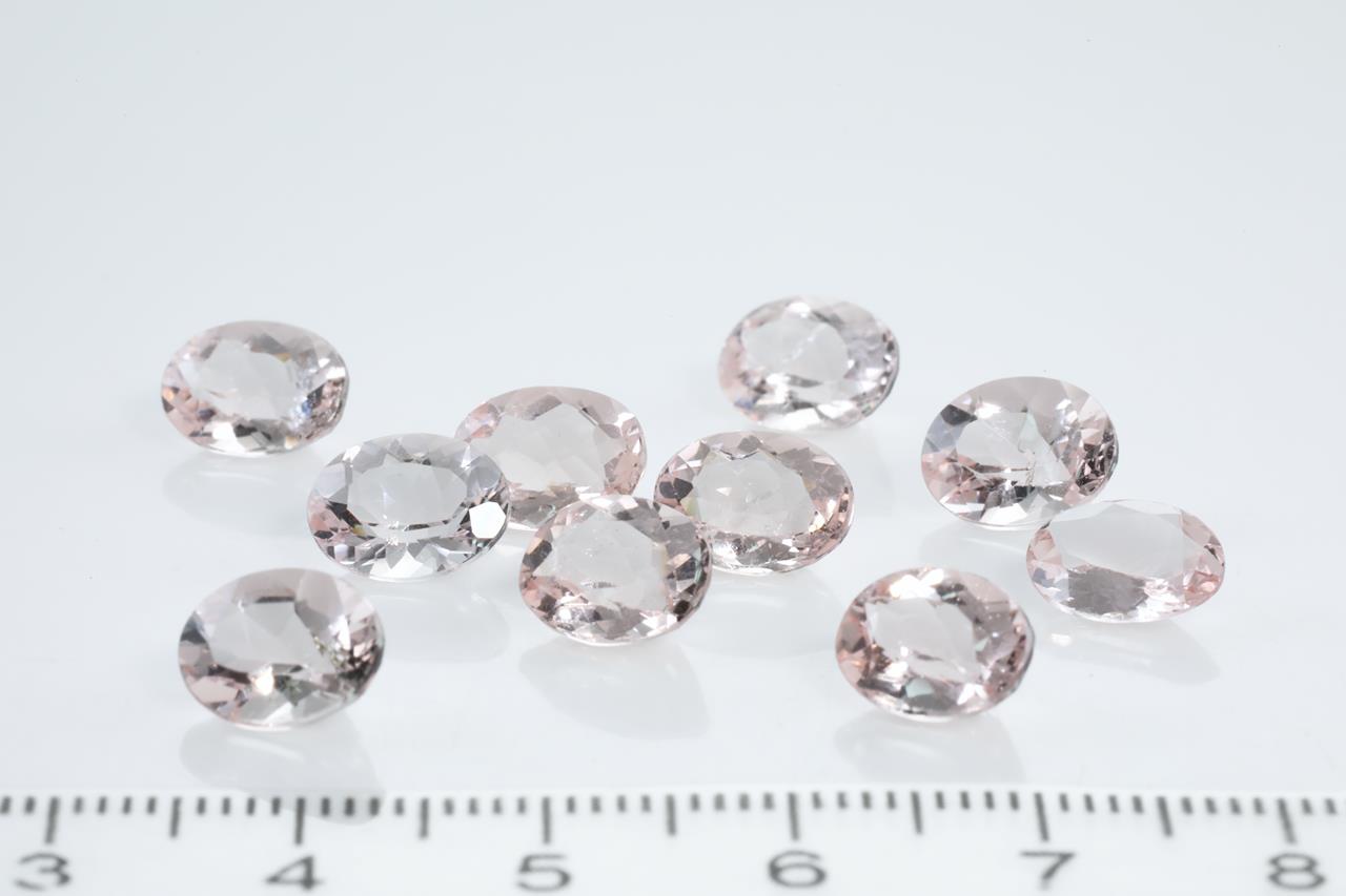 A loose parcel of 10 oval shape Morganites totalling 17.54cts. Approximate size: 9mm x 7mm. (New)