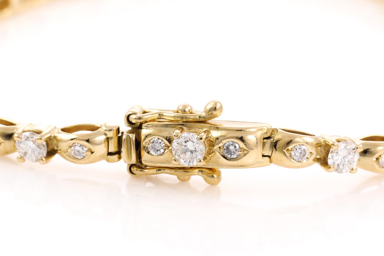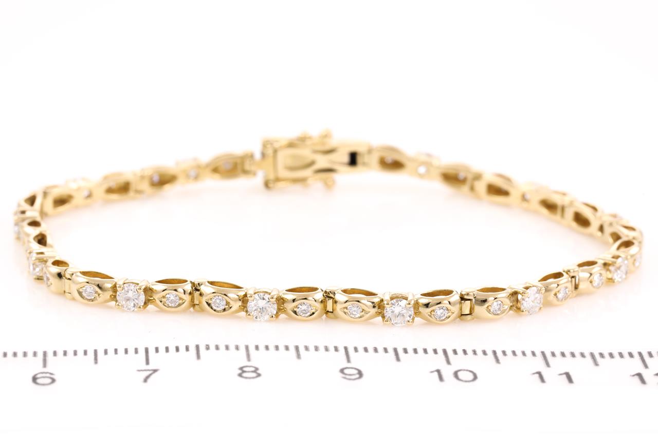 Diamond bracelet with round Diamonds totalling 1.78cts (Estimated grading: H VS-SI). 18ct yellow gold. Length: 17.5cm. Weight: 11.7g. (Pre-owned)