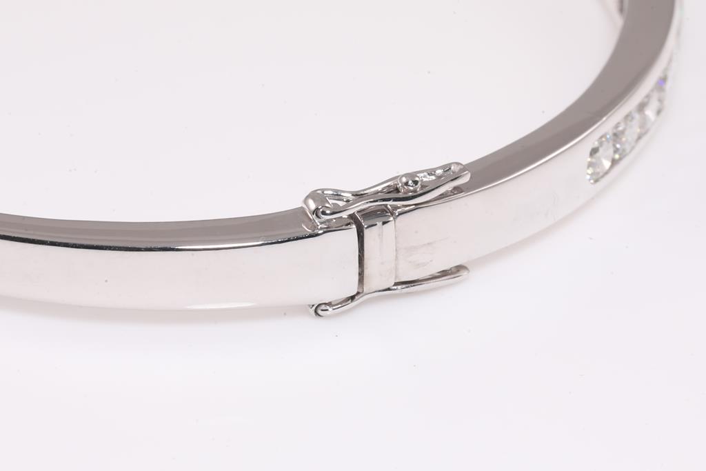 Diamond bangle with 20 round Diamonds totalling 1.79cts (Estimated grading: H-I SI). Circumference: 16cm. 18ct white gold. Weight: 16.4g. With certificate #415567. (Pre-owned)
