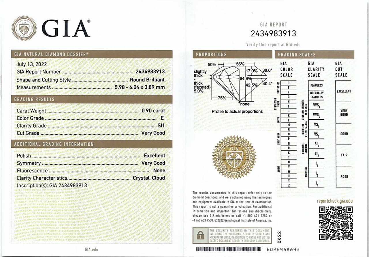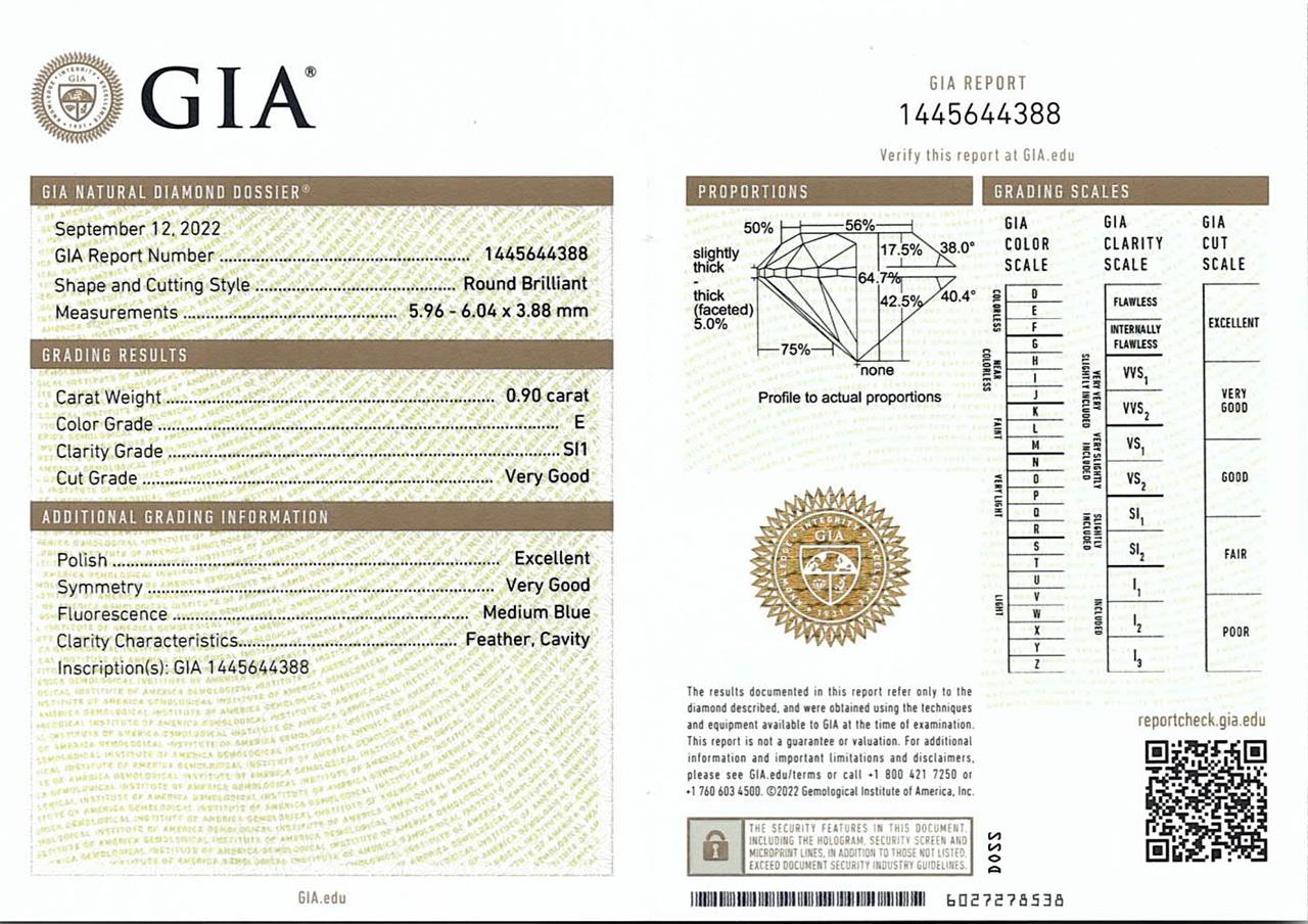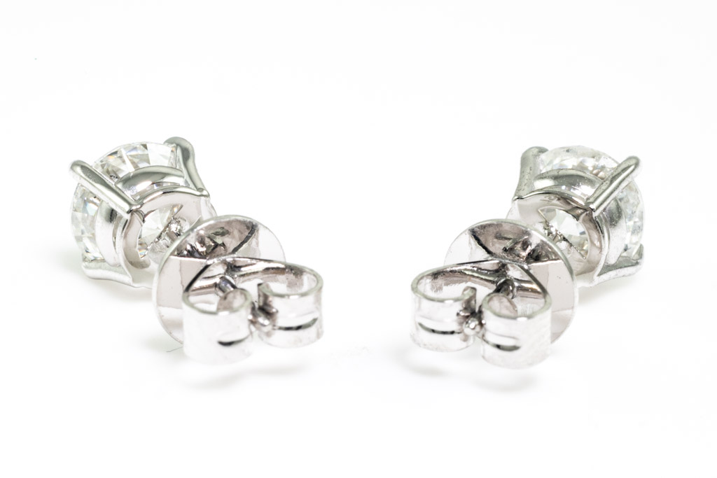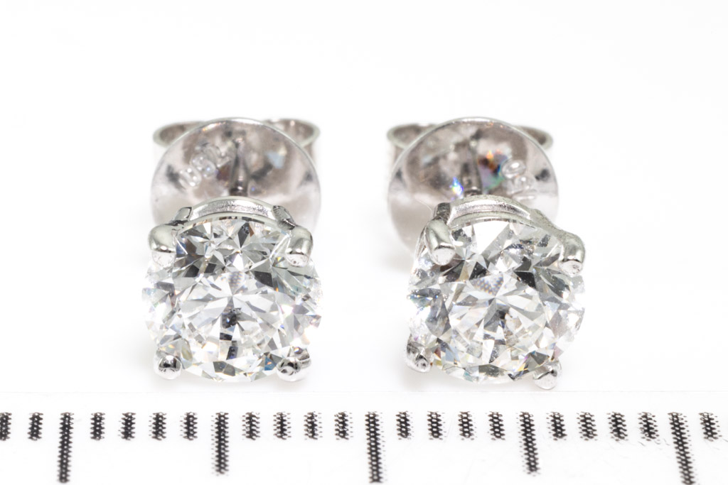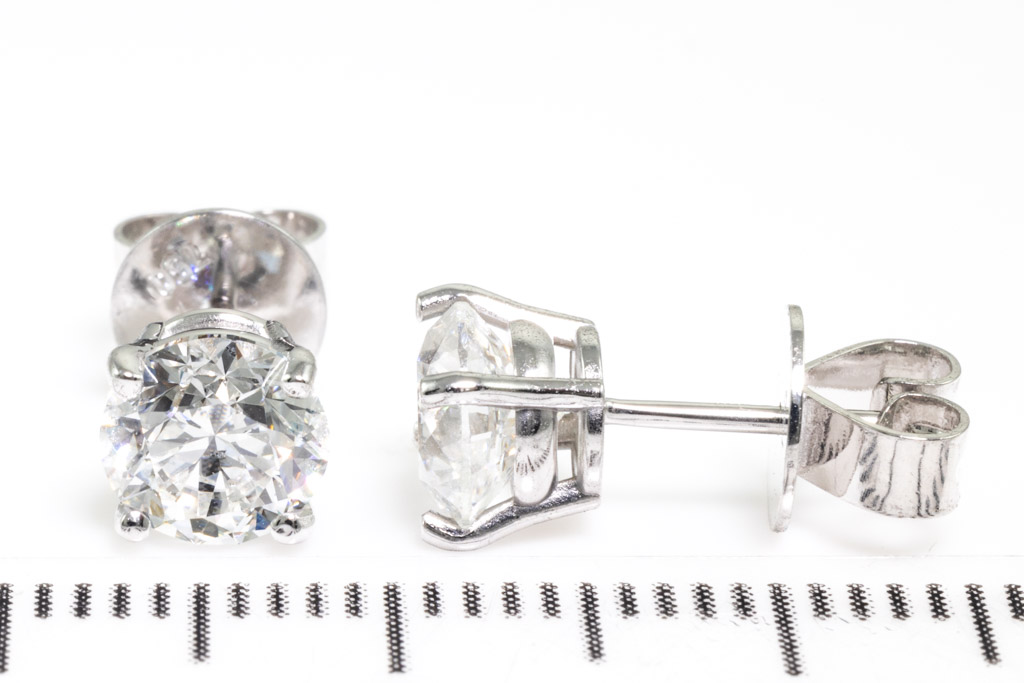 Diamond stud earrings with 2 round brilliant cut Diamonds totalling 1.80cts (with GIA reports graded as E SI1 #1445644388, 2434983913). 18ct white gold. Weight: 1.8g. (New)