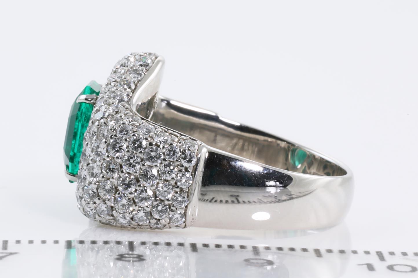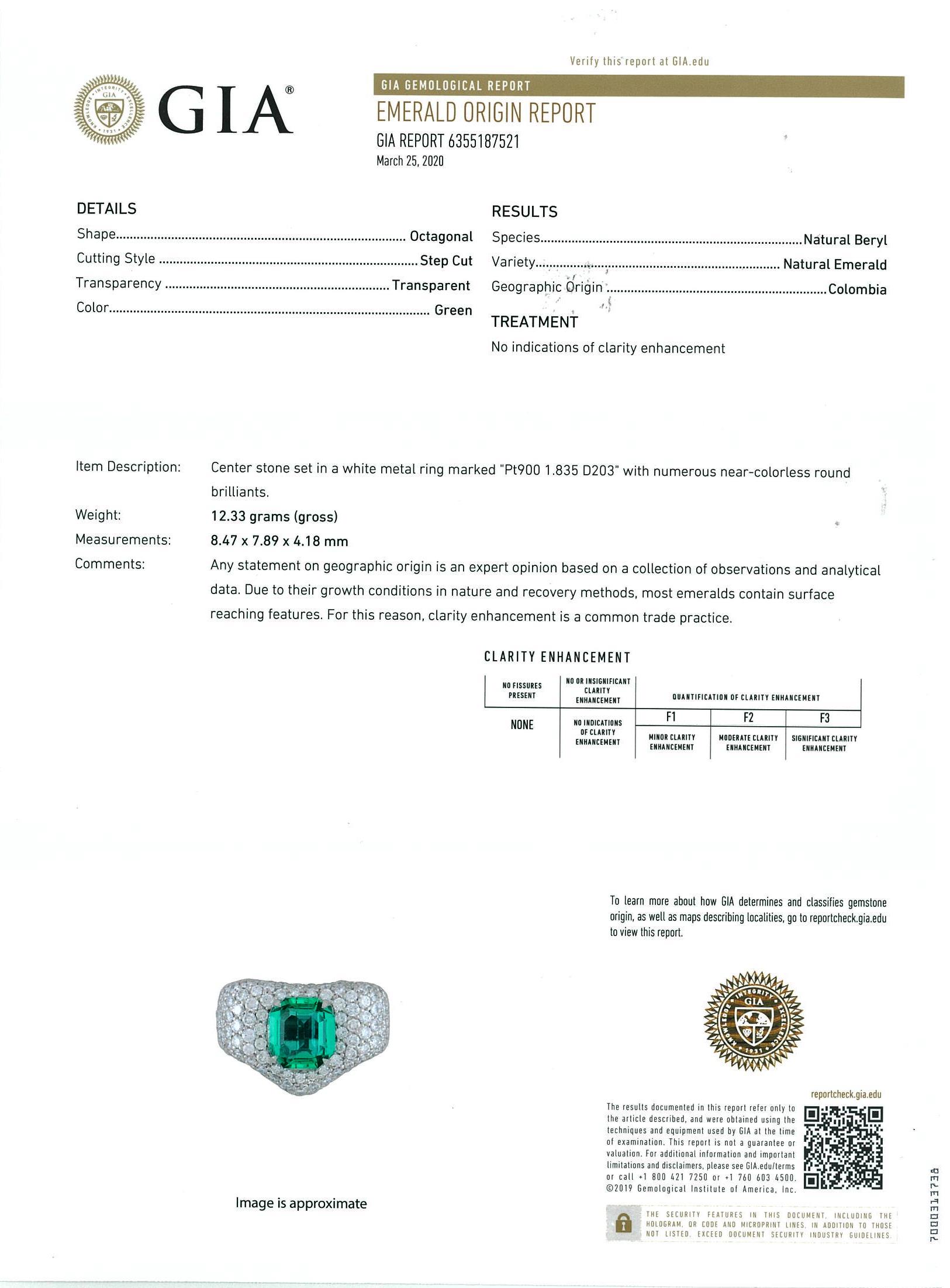Emerald and Diamond ring with emerald cut Columbian Emerald of 1.83ct (with GIA Report #6355187521) and Diamonds totalling 2.03cts (Estimated grading: F-G VS). Platinum. Ring size: L1/2 - It is not recommended to resize this ring. Weight: 12.0g (Pre-owned)