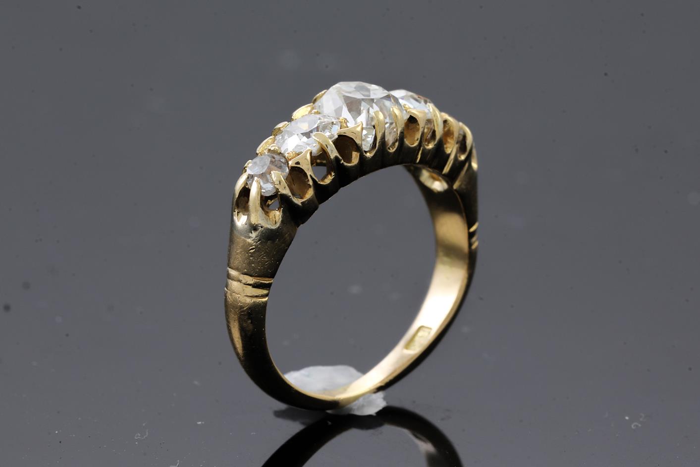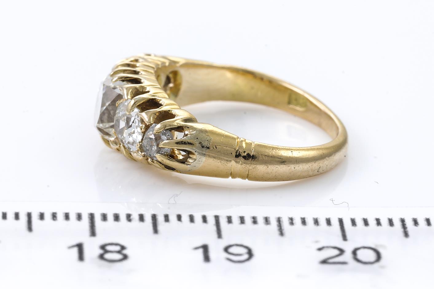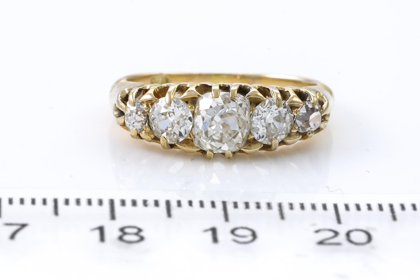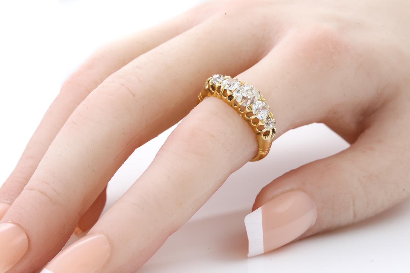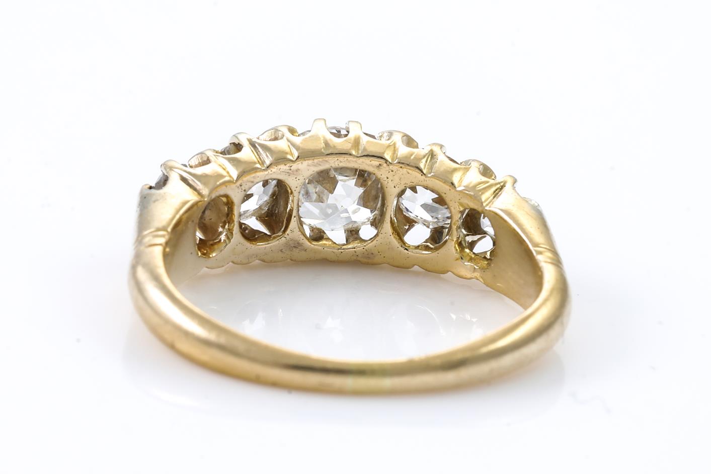 Diamond etenity ring with five European cut Diamonds totalling approximately 1.84cts (Estimated grading J-K SI-P1). 18ct yellow gold. Ring size K. Weight 4.8g. (Pre-owned)
