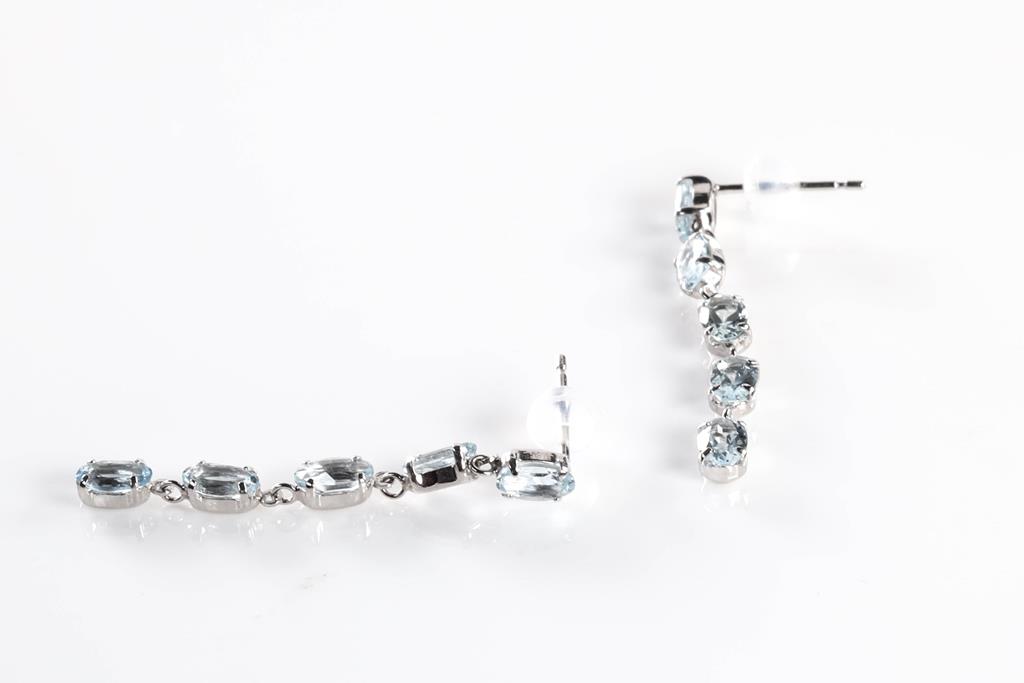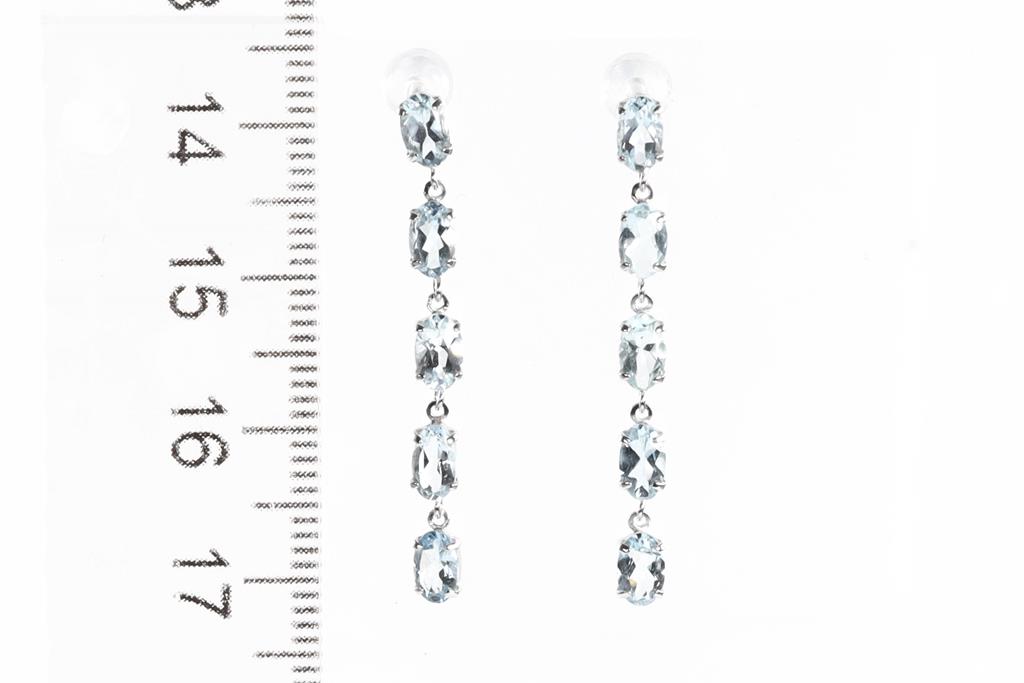 Aquamarine drop earrings with 10 oval shape Aquamarines totalling 1.85cts. Platinum with silicon backs. Weight: 1.6g. (Pre-owned)