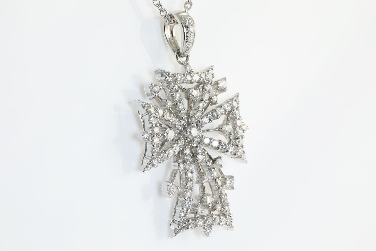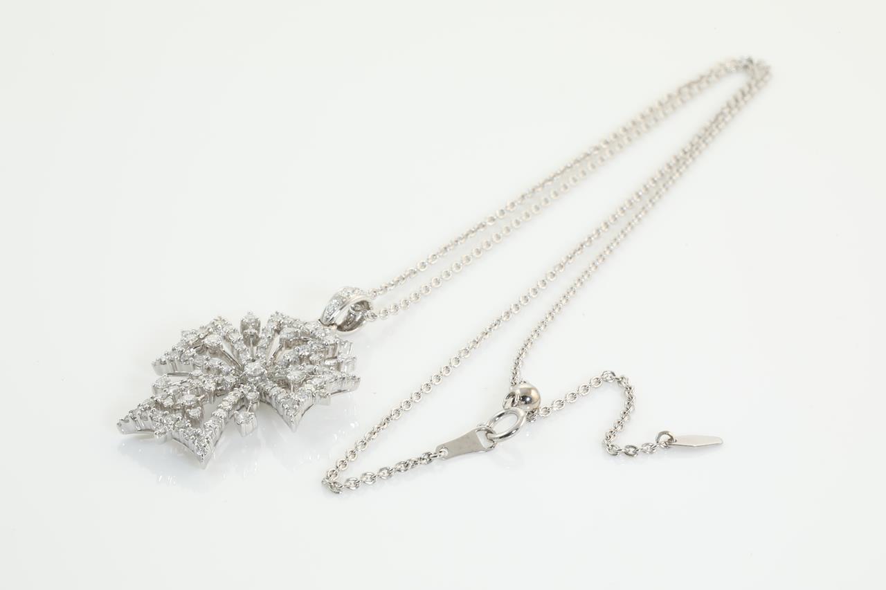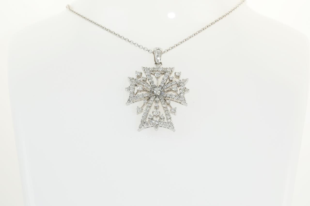 Diamond Dress Pendant with round Diamonds totalling 1.85cts (Estimated grading: H SI). 18ct white gold with 18ct white gold 50cm adjustable chain. Weight: 12.5g (Pre-owned)