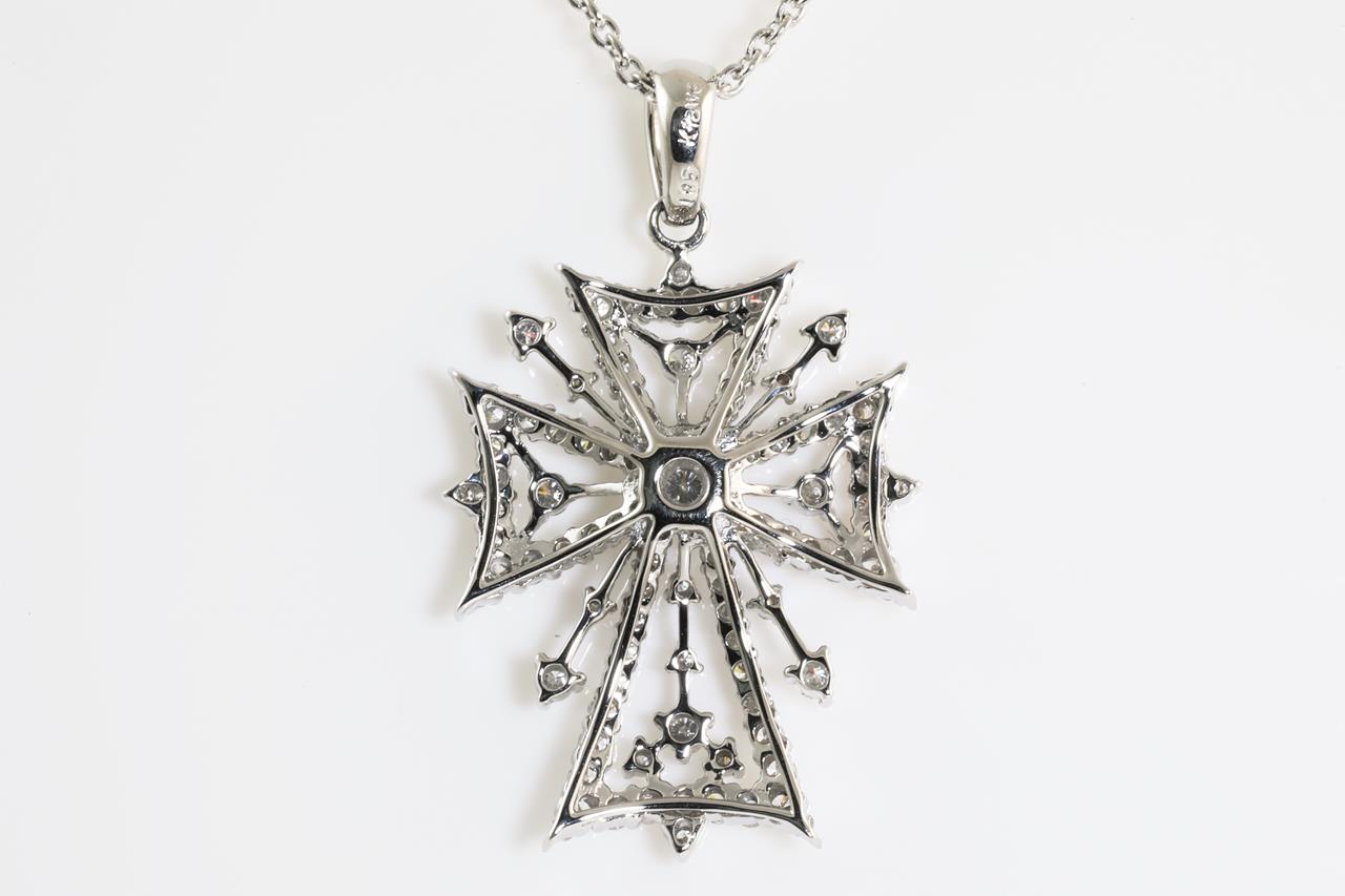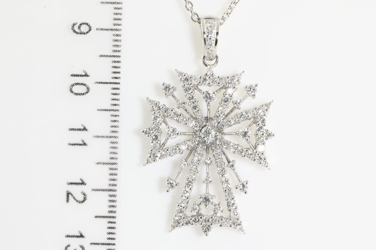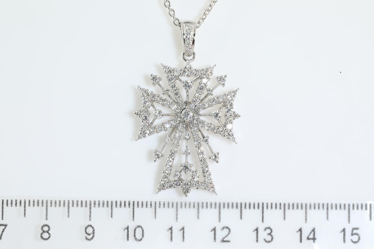 Diamond Dress Pendant with round Diamonds totalling 1.85cts (Estimated grading: H SI). 18ct white gold with 18ct white gold 50cm adjustable chain. Weight: 12.5g (Pre-owned)