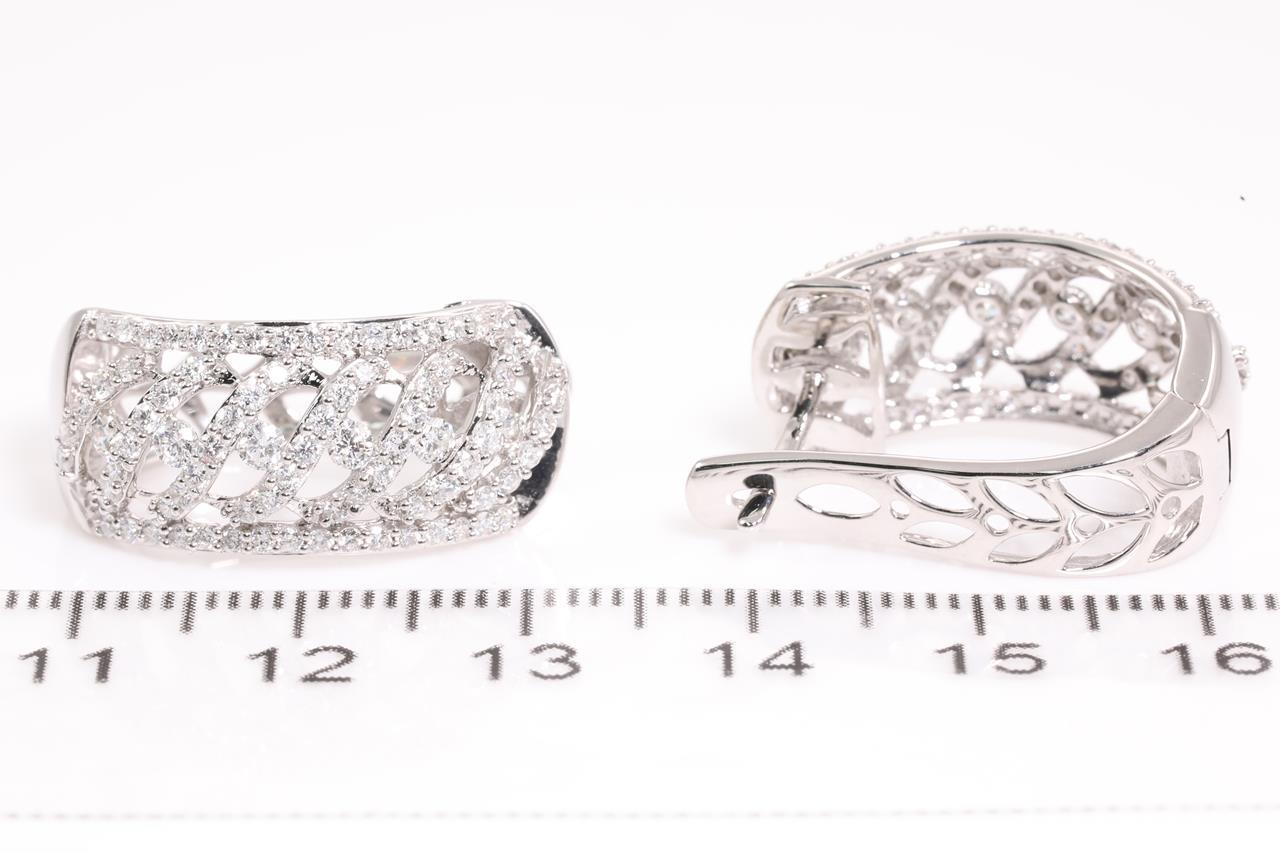 Diamond hinged back earrings with round Diamonds totalling 1.85cts (Estimated grading: H SI). 14ct White gold. Weight: 8.5g (New)