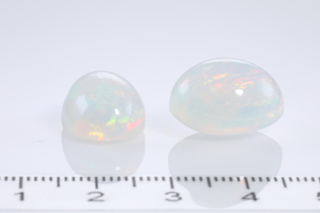A loose parcel of 2 oval cabochon cut Crystal Opals totalling 18.85cts. Approximate size: 16mm x 12mm. (New)
