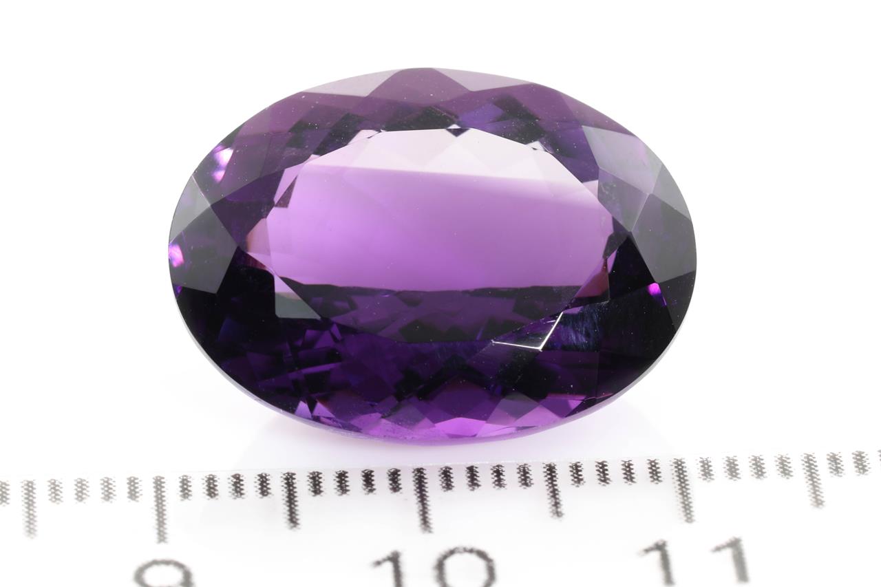 A Loose oval Amethyst of 18.90ct. Size: 20.4 x 15.3 x 10.3mm. (New)
