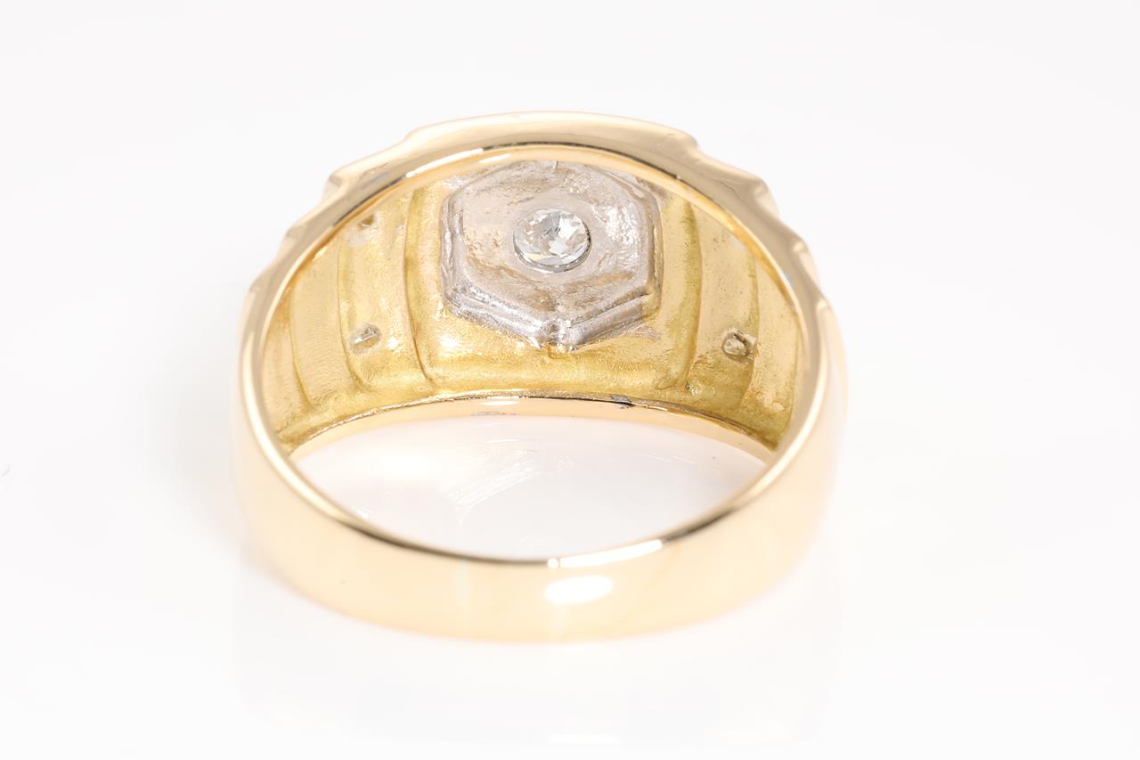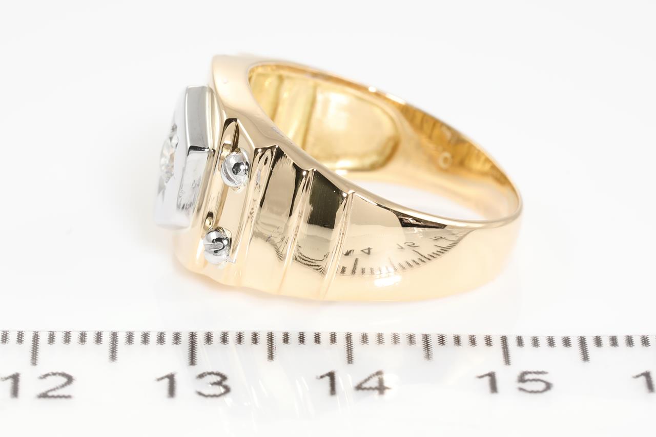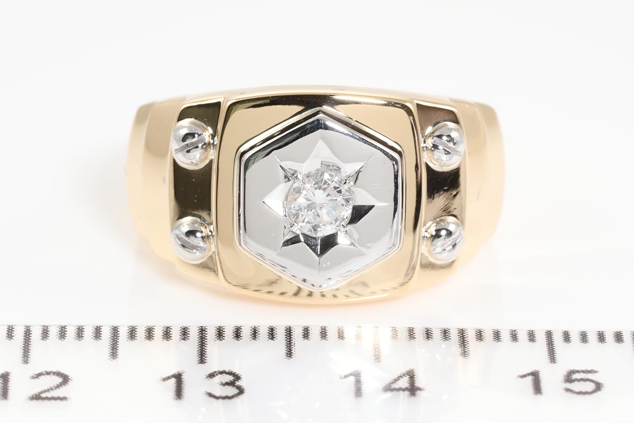 Mens ring with a round Diamond of 0.20ct (Estimated grading: H P1). Platinum and 18ct yellow gold. Ring size S. Weight: 8.8g (Pre-owned)