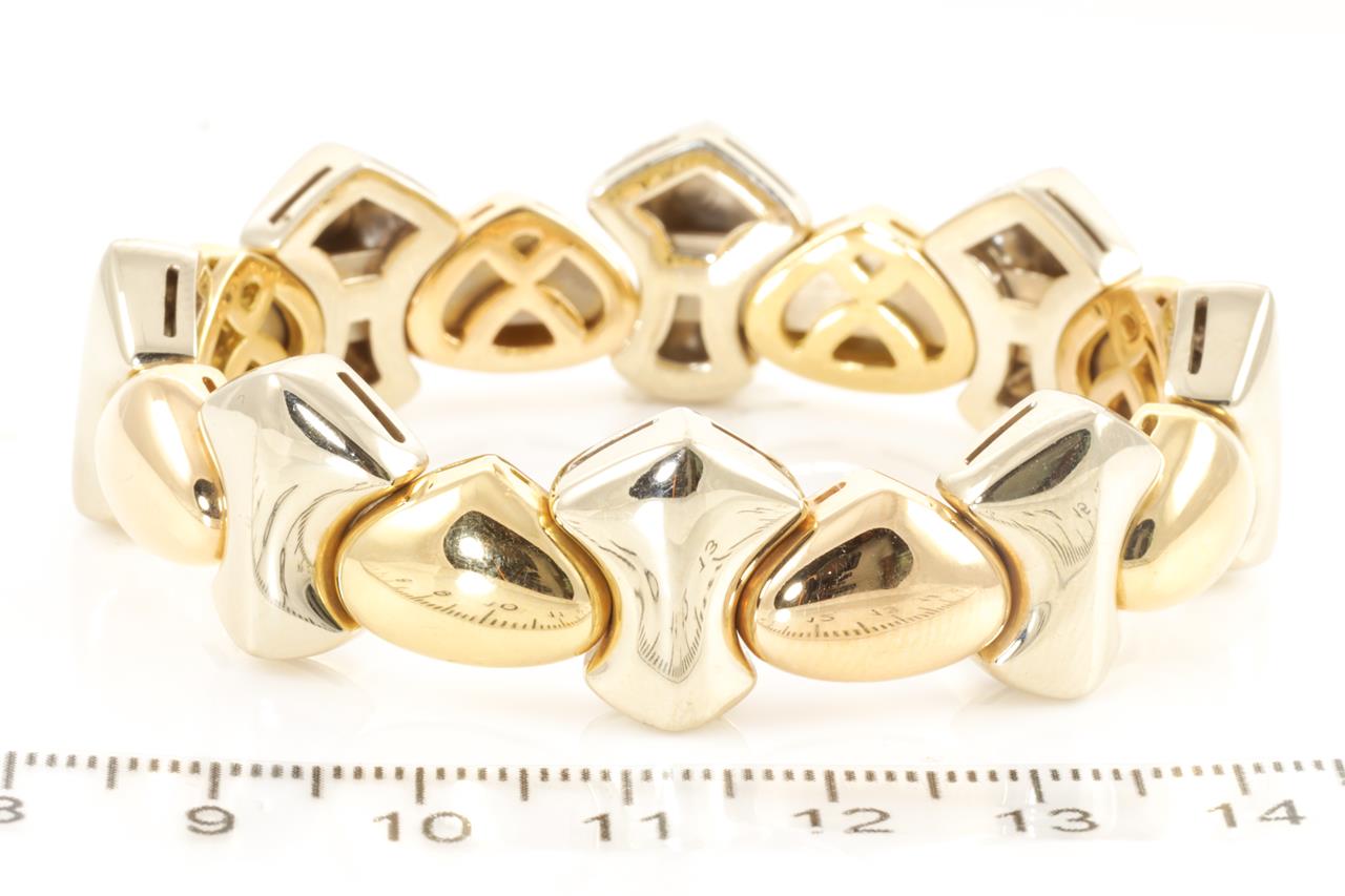 18ct rose and yellow gold bracelet. Length 14cm. Weight 37.7g. (Pre-owned)