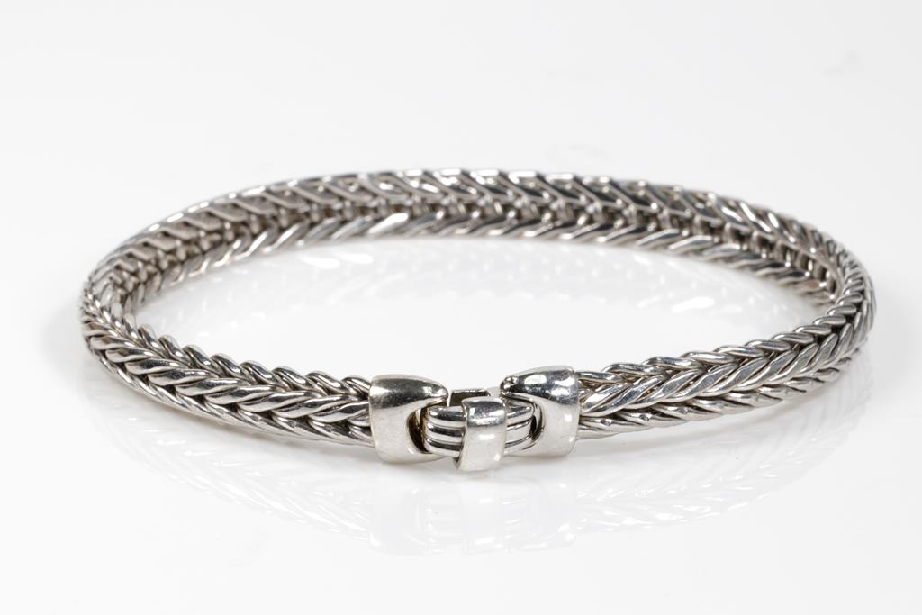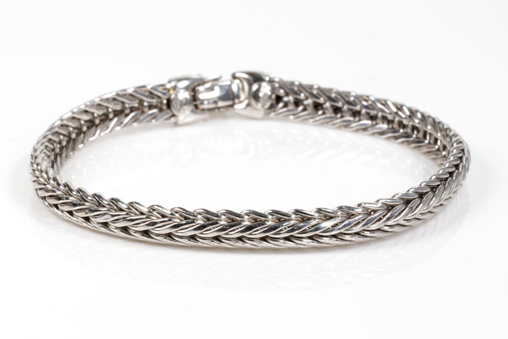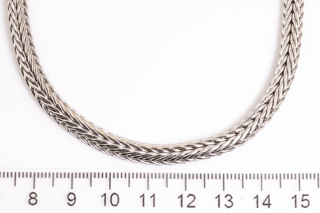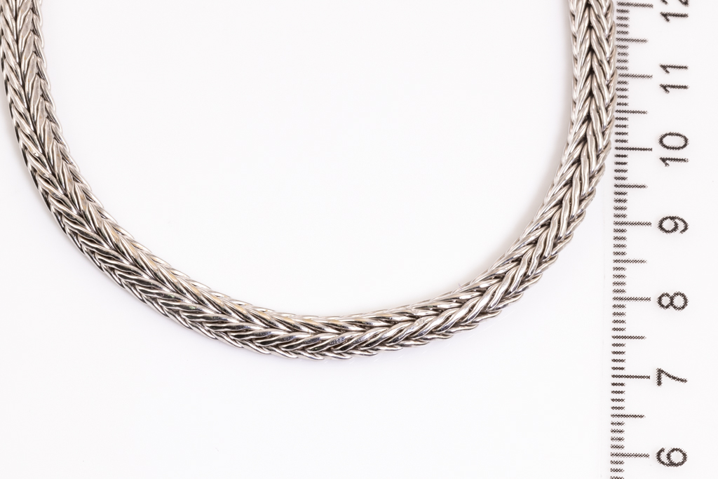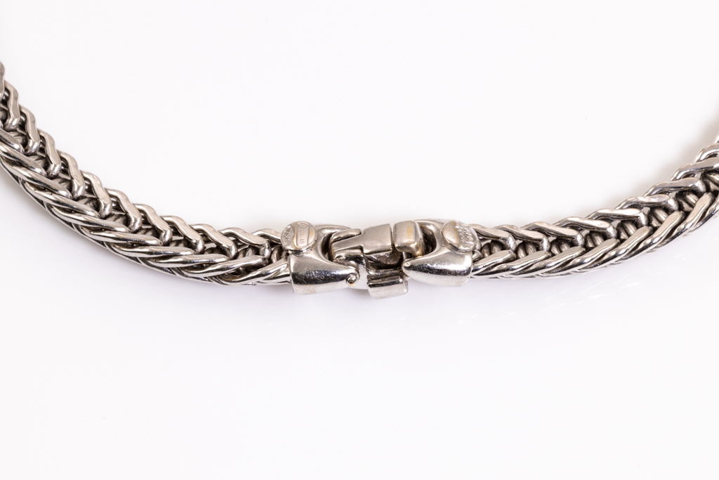 18ct white gold necklace. Length 43.5cm. Weight 20.9g. Together with matching 18ct white gold bracelet. Weight 10.1g. Length 18cm. Combined weight 31.0g. (Pre-owned)