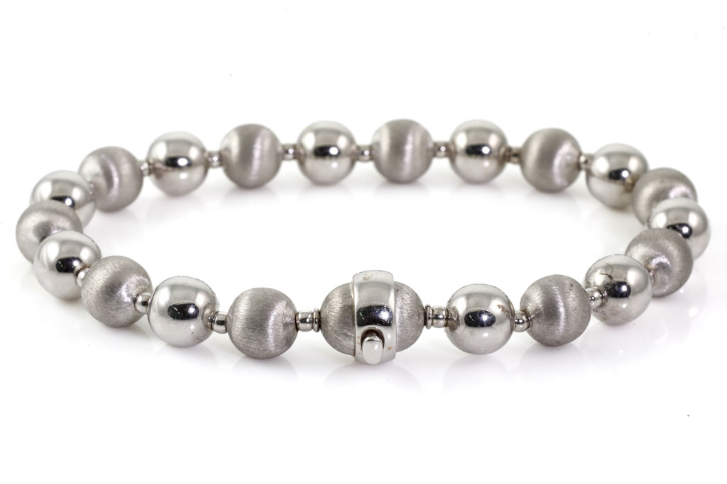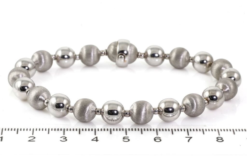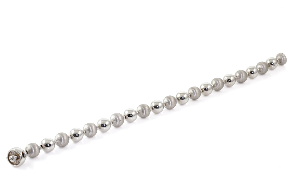 Ball chain bracelet with 20 matt & polished ball bead of 7.9mm. 18ct white gold. Length: 20cm. Weight: 18.1g (Pre-owned)