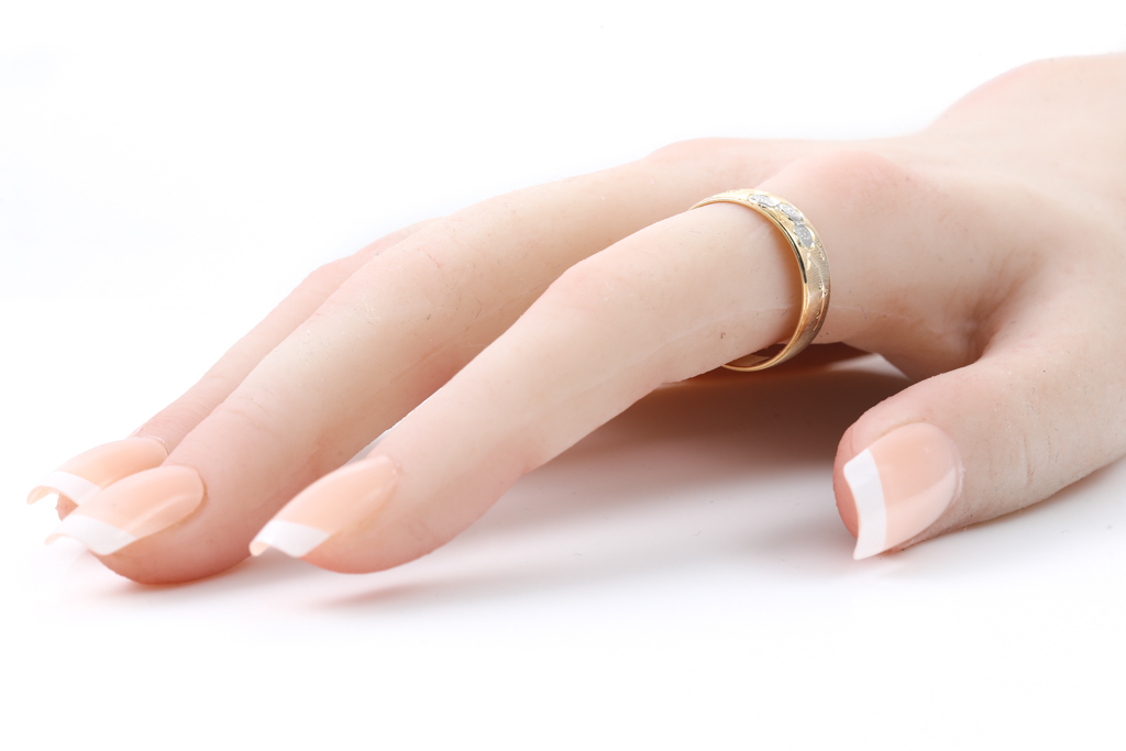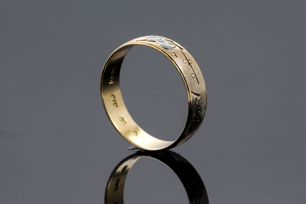 Gold ring. 18ct yellow gold white rhodium plated. Ring size R 3/4. Weight: 3.8g. (Pre-owned)
