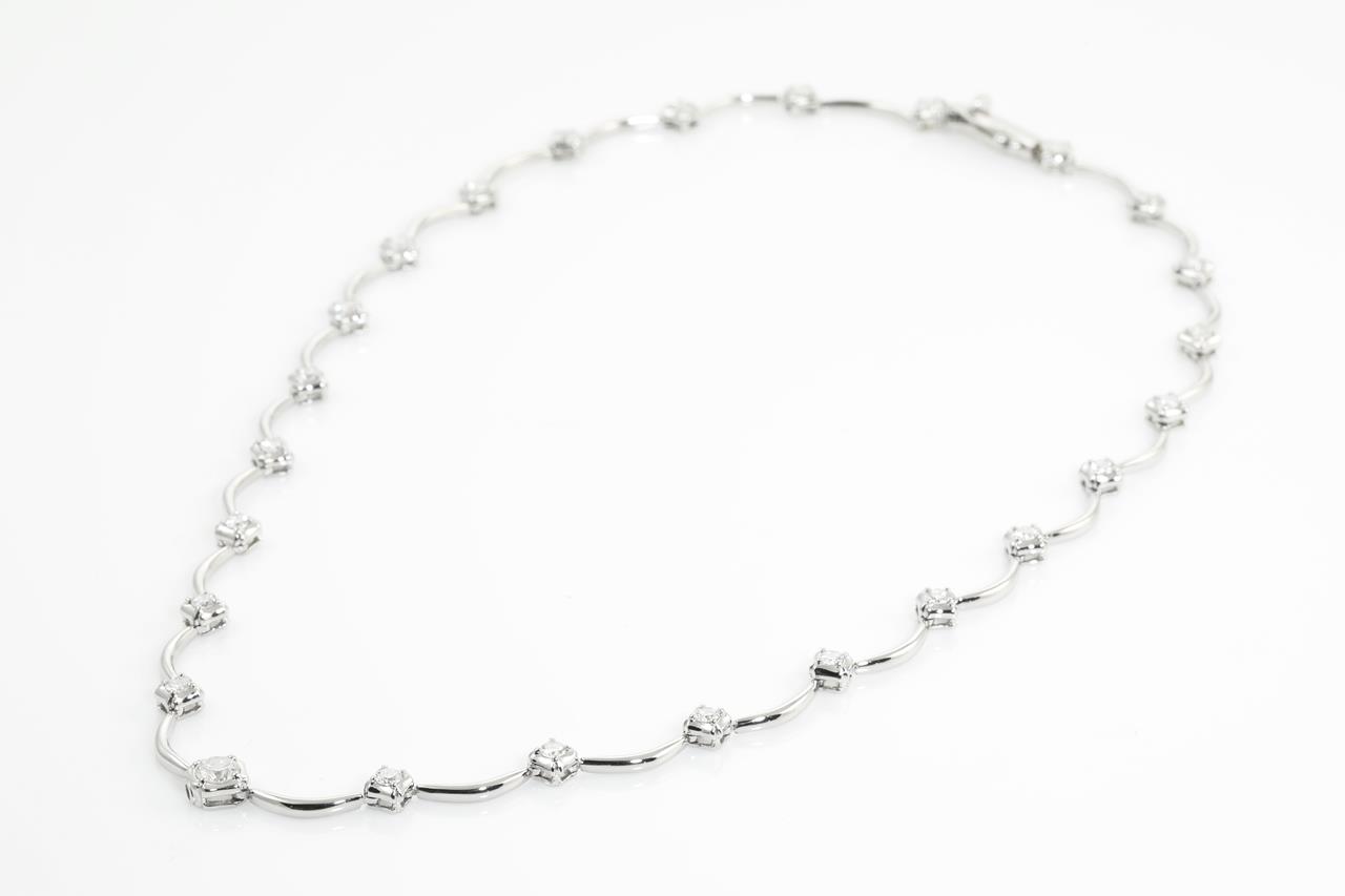 Diamond necklace with round Diamonds totalling 1.90cts (Estimated grading: H SI-P1). Platinum. Length: 42cm. With certificate. Weight: 26.9g. (Pre-owned)