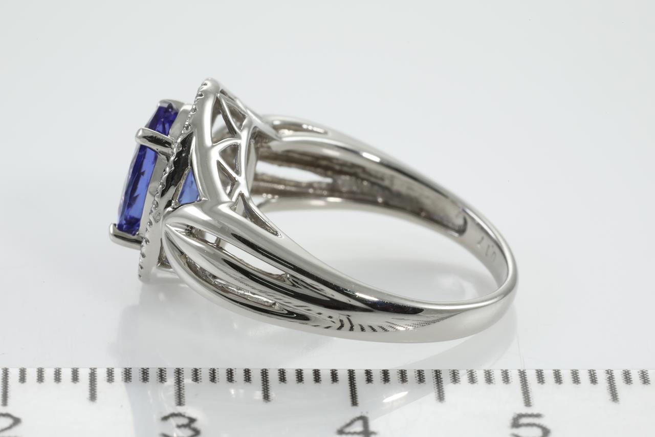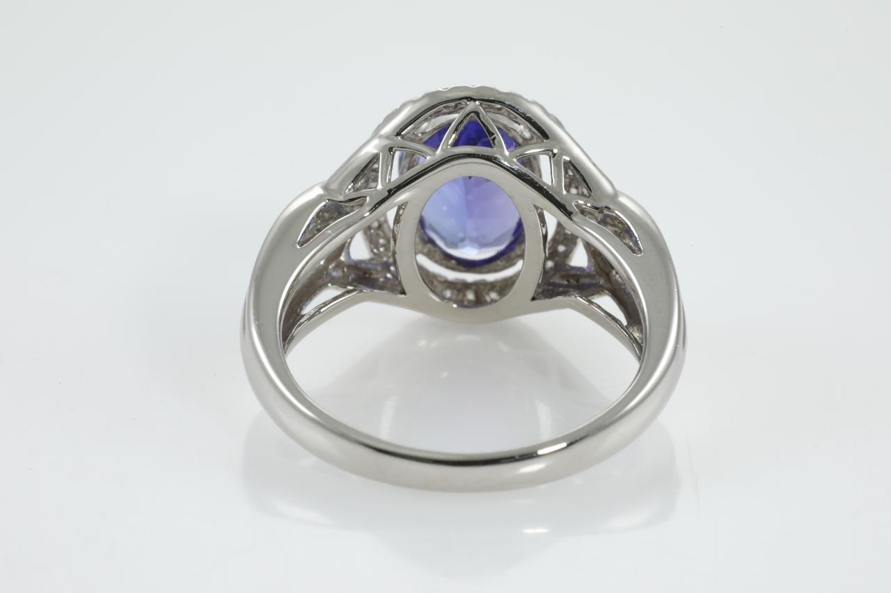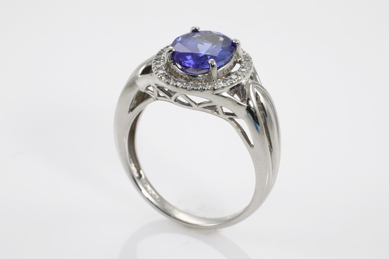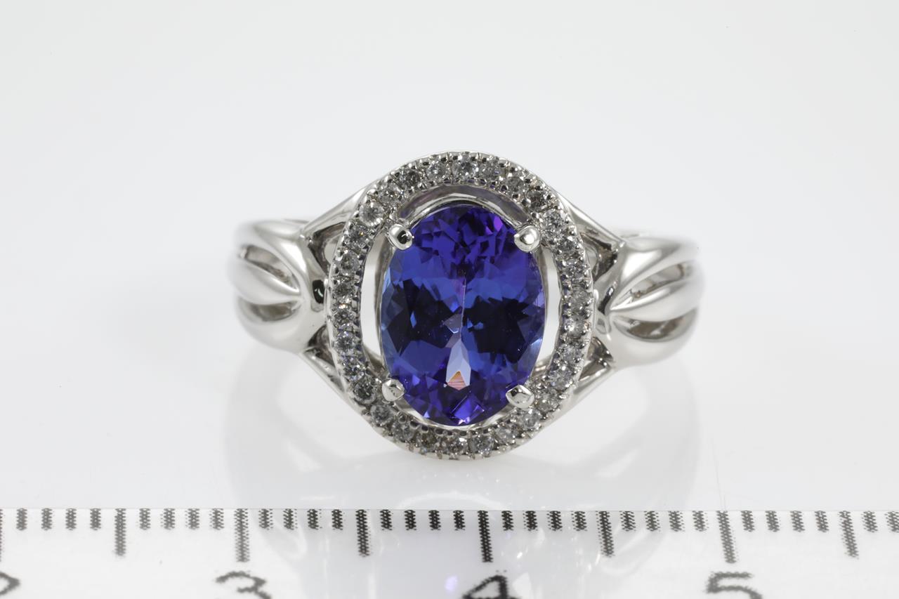 Tanzanite and Diamond ring with oval shape Tanzanite of 1.91ct and round Diamonds totalling 0.17cts. Platinum. Ring size M. Weight: 5.7g. (Pre-owned)
