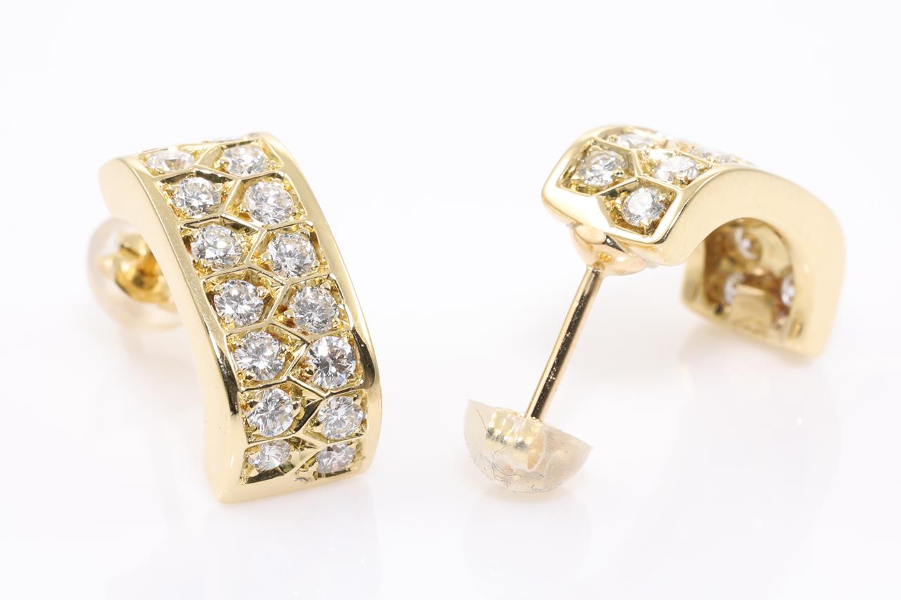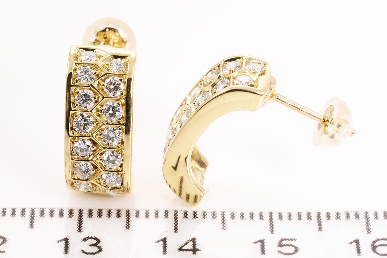 Diamond Earrings with round Diamonds totalling approximately 1.92cts (Estimated grading: G VS). 18ct yellow gold with gold & silicon backs. Weight: 6.4g (Pre-owned)