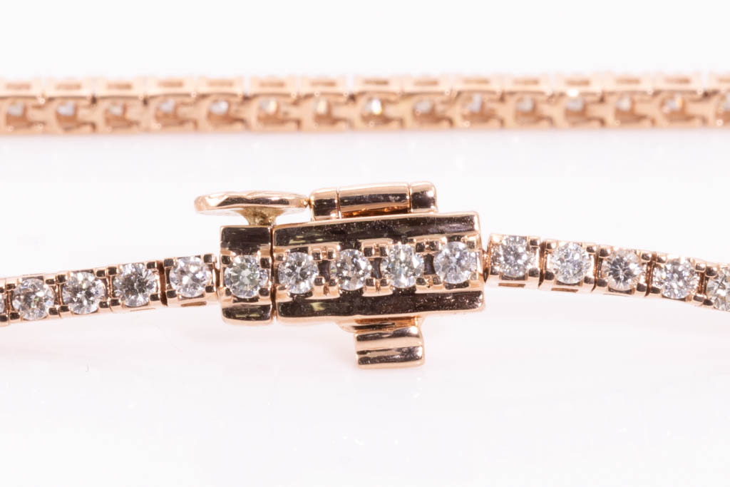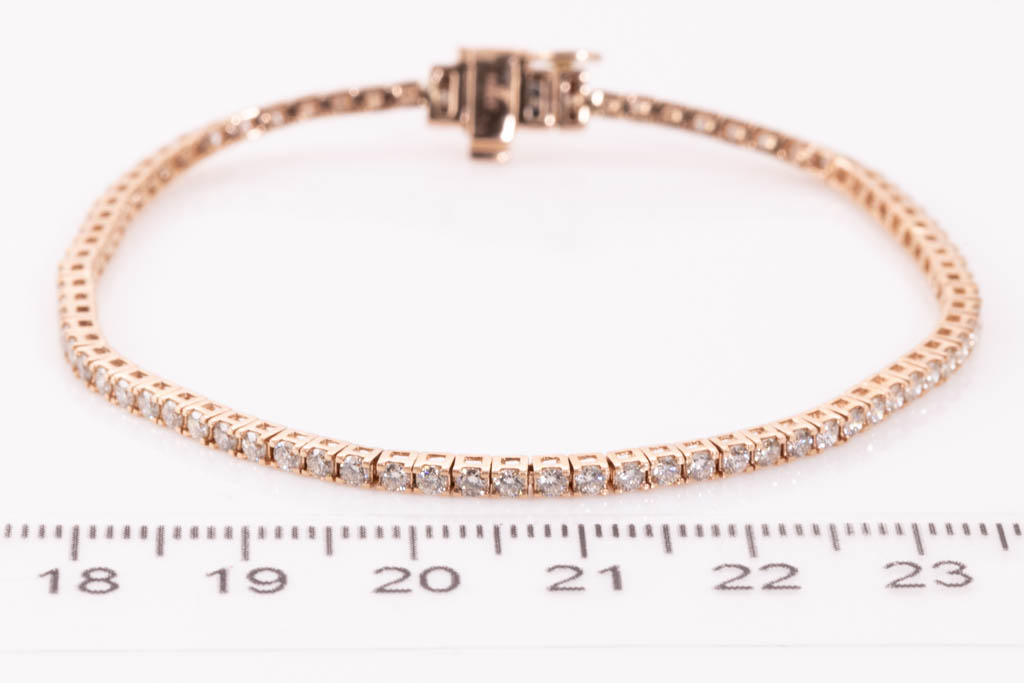 Diamond tennis bracelet with 80 round diamonds totalling 1.97cts (Estimated grading: H SI). 14ct rose gold. Length: 18cm. Weight: 6.9g. (New)