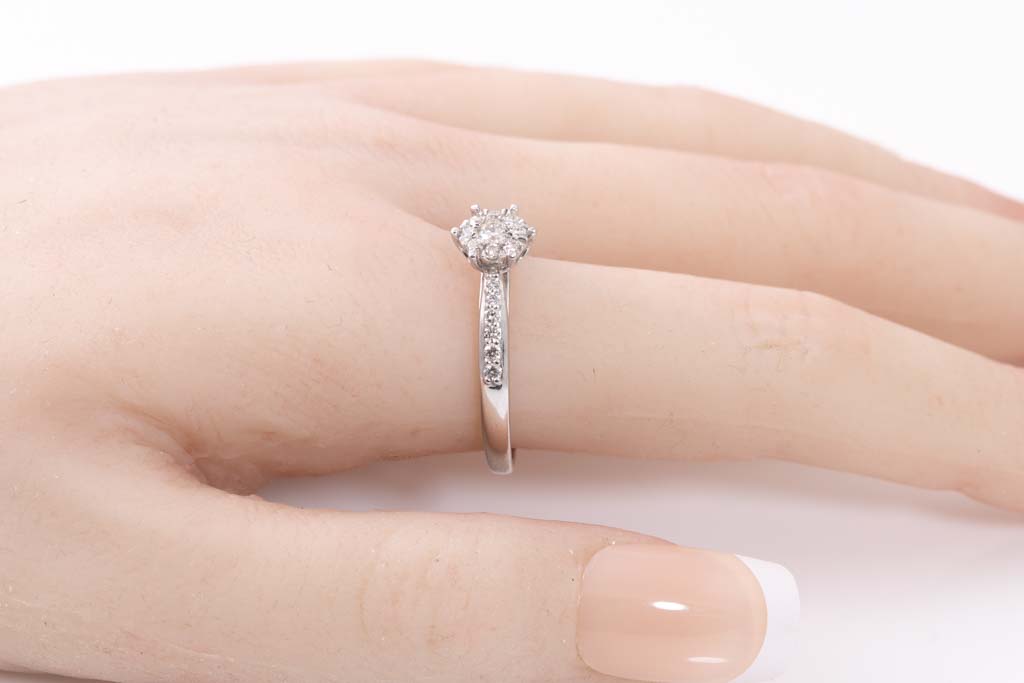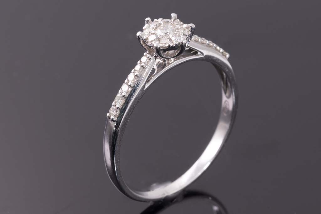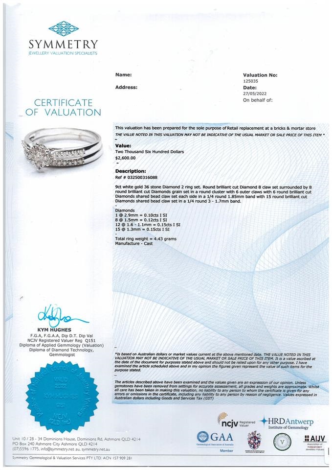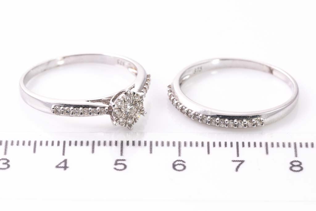 2 Diamond ring set with a Diamond dress ring with round Diamonds totalling 0.37cts (Estimated grading: I SI) and a eternity ring with round Diamonds totalling 0.15cts. Both 9ct white gold. Ring size U1/2. Weight: 4.5g. With Valuation Certificate Ref #032500316088. (Pre-owned)