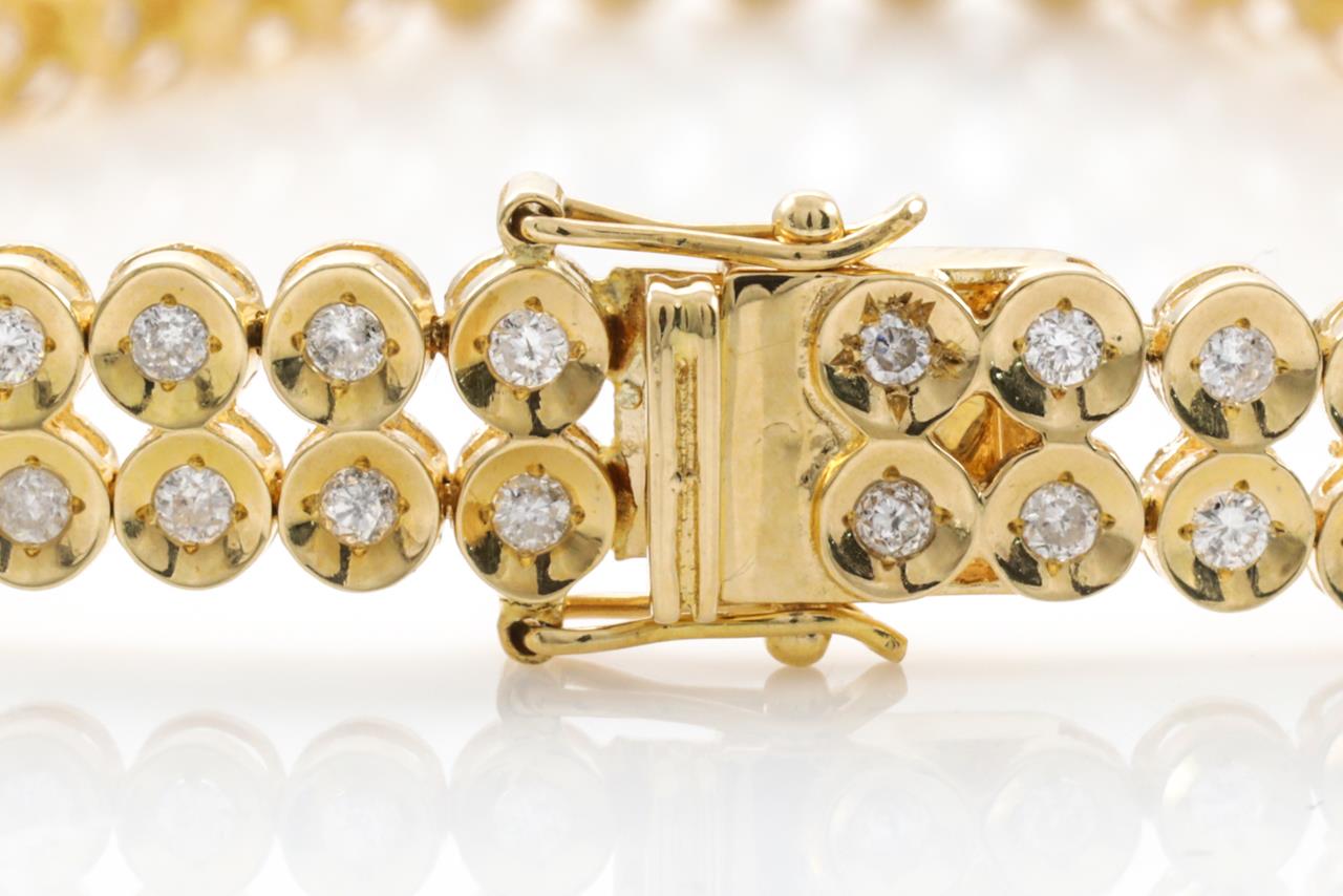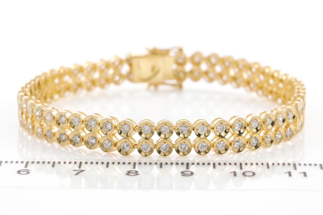 Diamond two row bracelet with round Diamonds totalling 2.00cts (Estimated grading: G-H SI-P1). 18ct yellow gold. Length: 18cm. Weight: 15.2g. (Pre-owned)