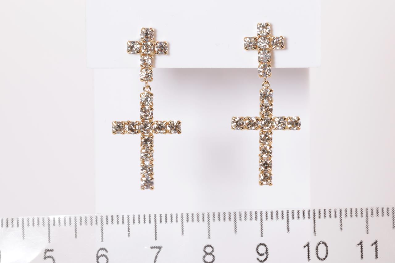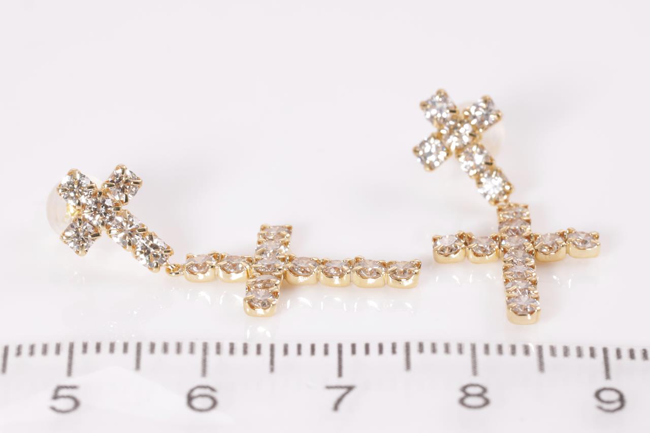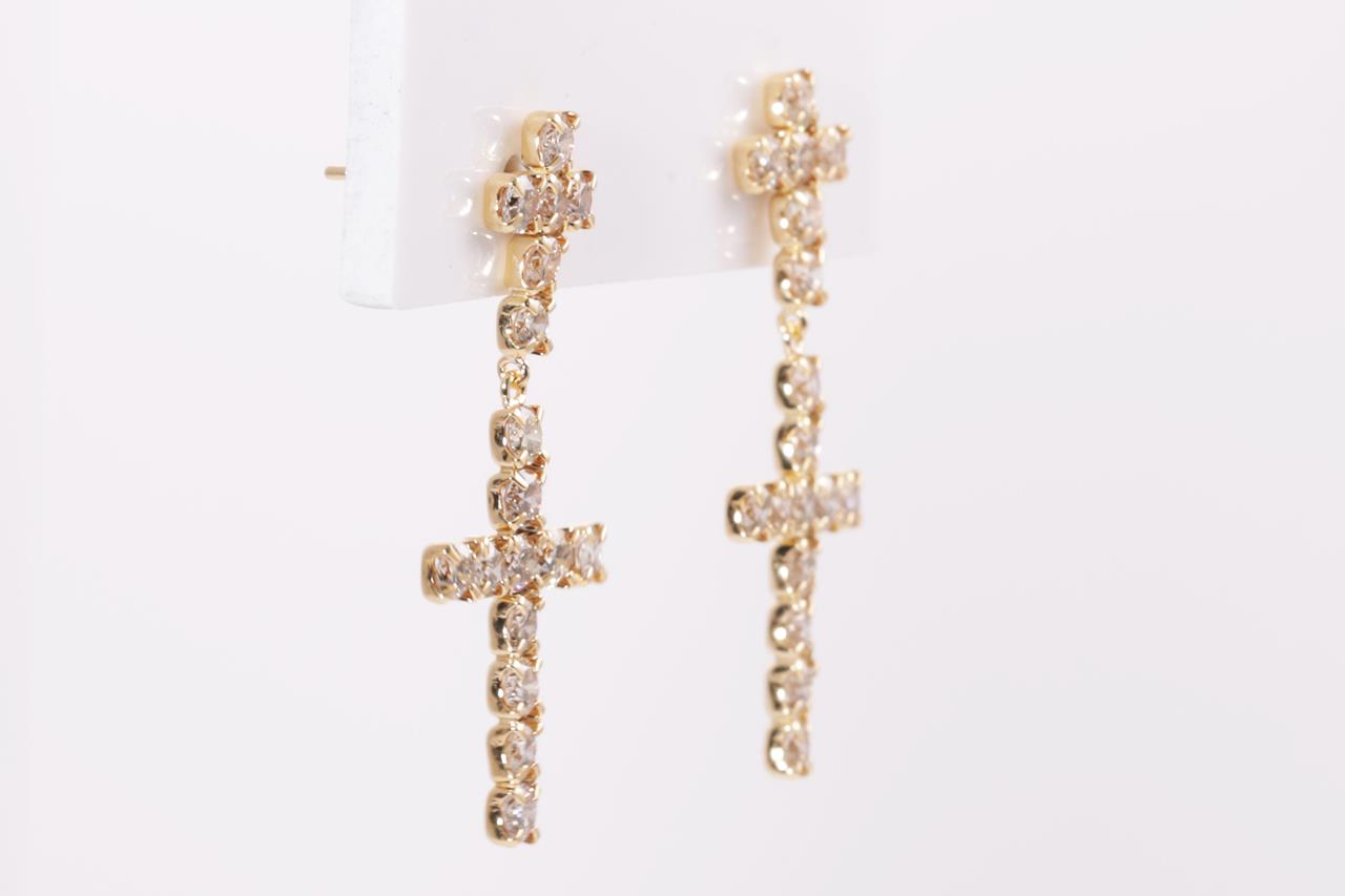Diamond cross drop earrings with round shape Diamonds totalling 2.00cts (Estimated grading: K SI). 18ct yellow gold. Weight: 1.7g. (Pre-owned)
