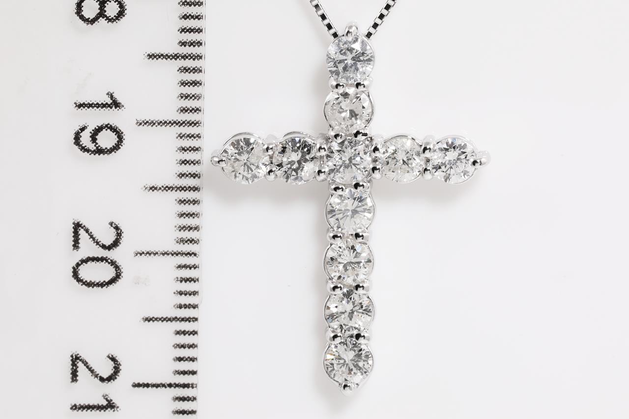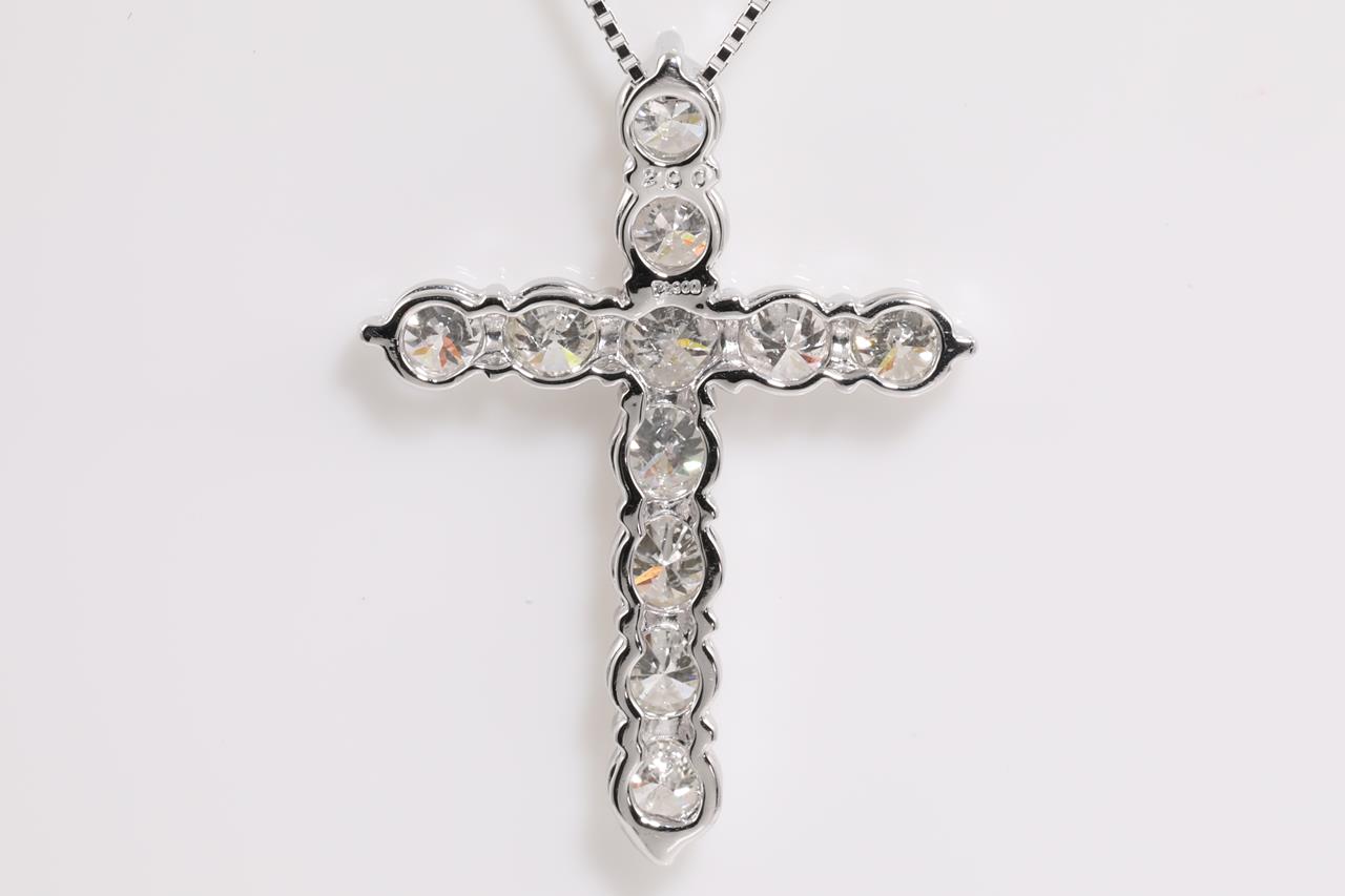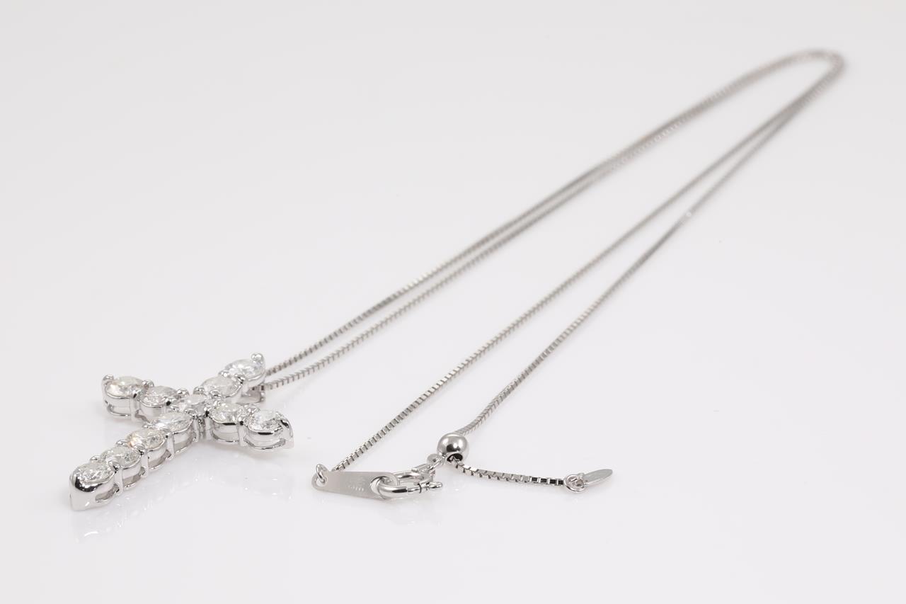 Diamond cross pendant with round Diamonds totalling 2.00cts (Estimated grading: FGI P1-2). Platinum with 18ct adjustable white gold 44cm chain. Weight: 4.5g. (Pre-owned)