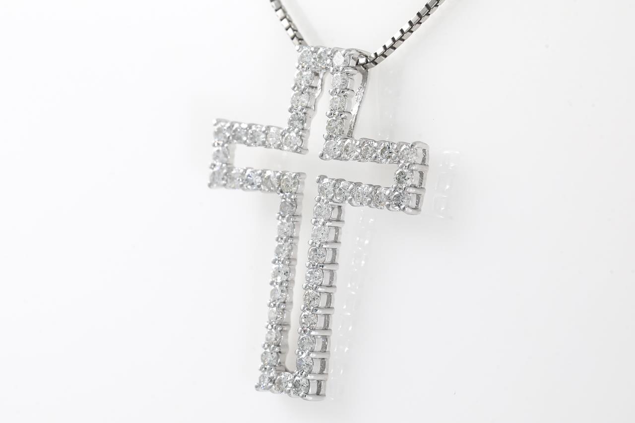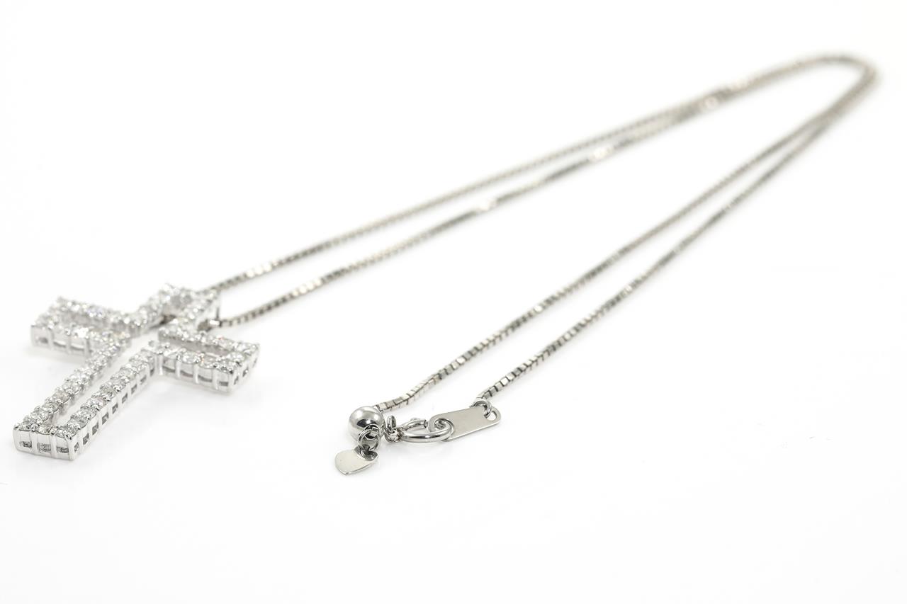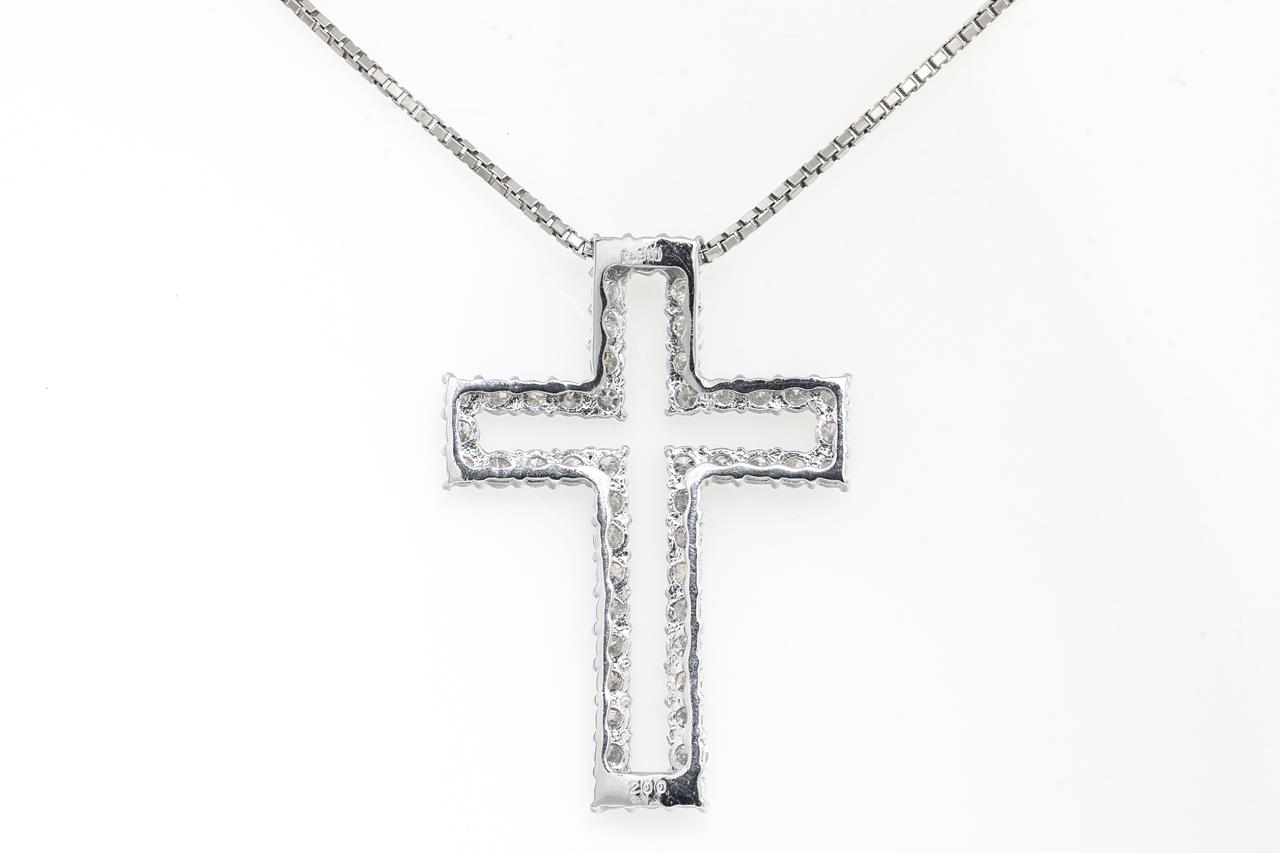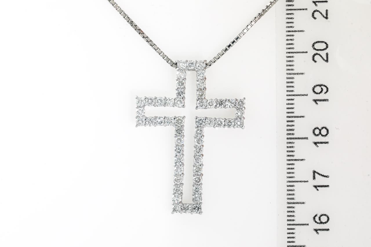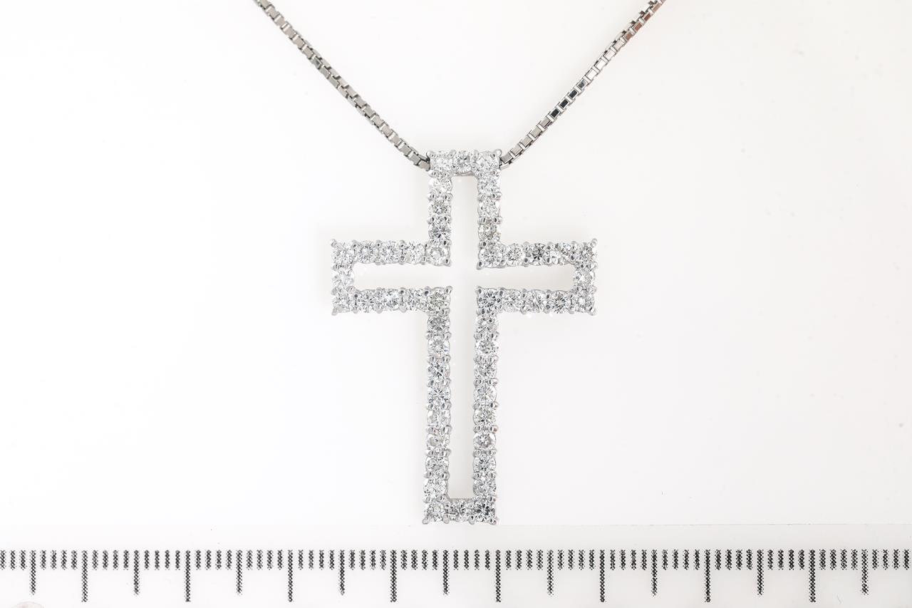 Diamond cross pendant with round Diamonds totalling 2.00cts (Estimated grading: G-H SI-P2). Platinum with 48cm chain. Weight: 12.9g. (Pre-owned)