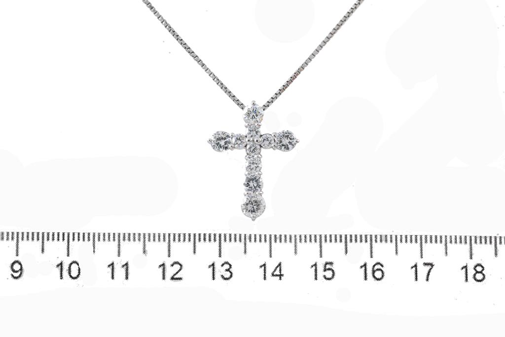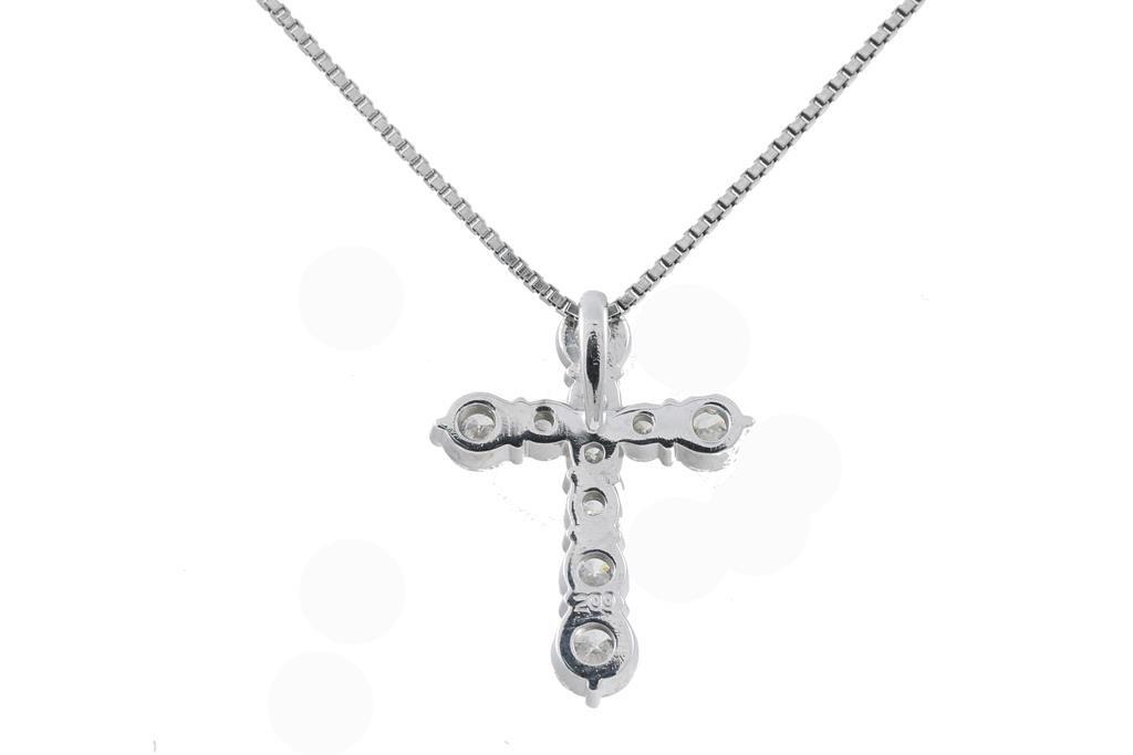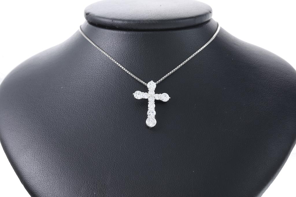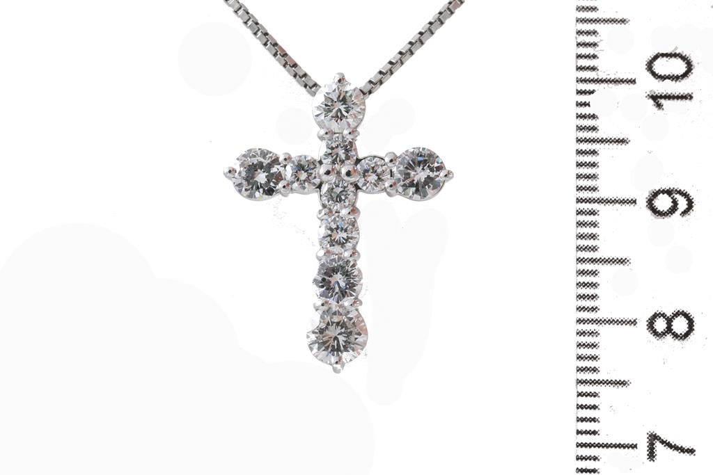Diamond cross pendant with round Diamonds totalling 2.00cts (Estimated grading: H-I P1-P2). Platinum with adjustable 40cm platinum chain. Weight: 8.3g. (Pre-owned)