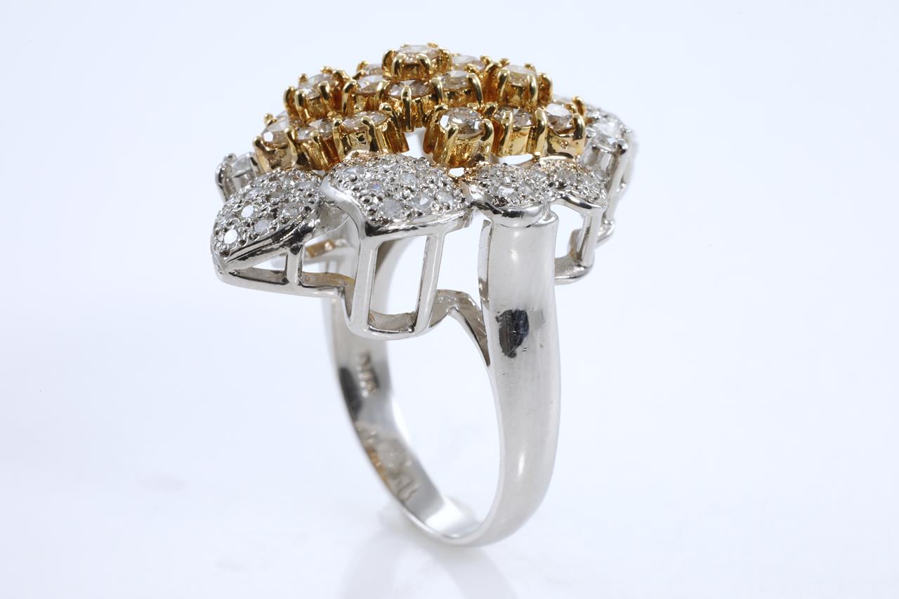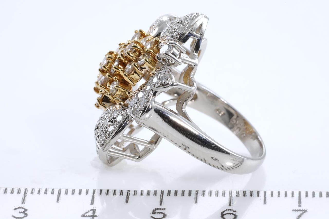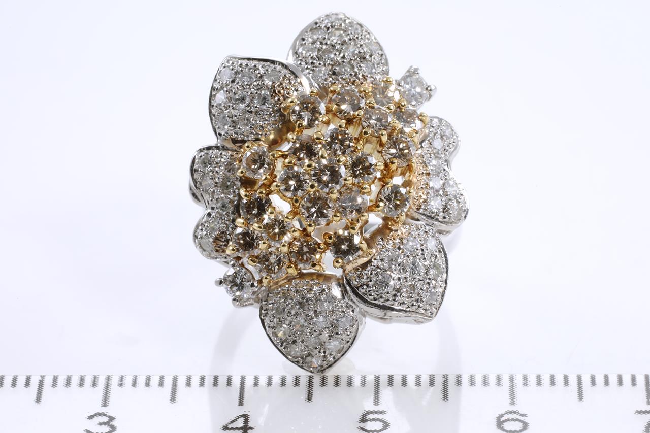 Diamond dress ring with round Diamonds totalling 2.00cts (Estimated grading: Natural champagne VS, H-I SI-P1). Platinum and 18ct gold yellow gold. Ring size M. Weight: 13.7g (Pre-owned)