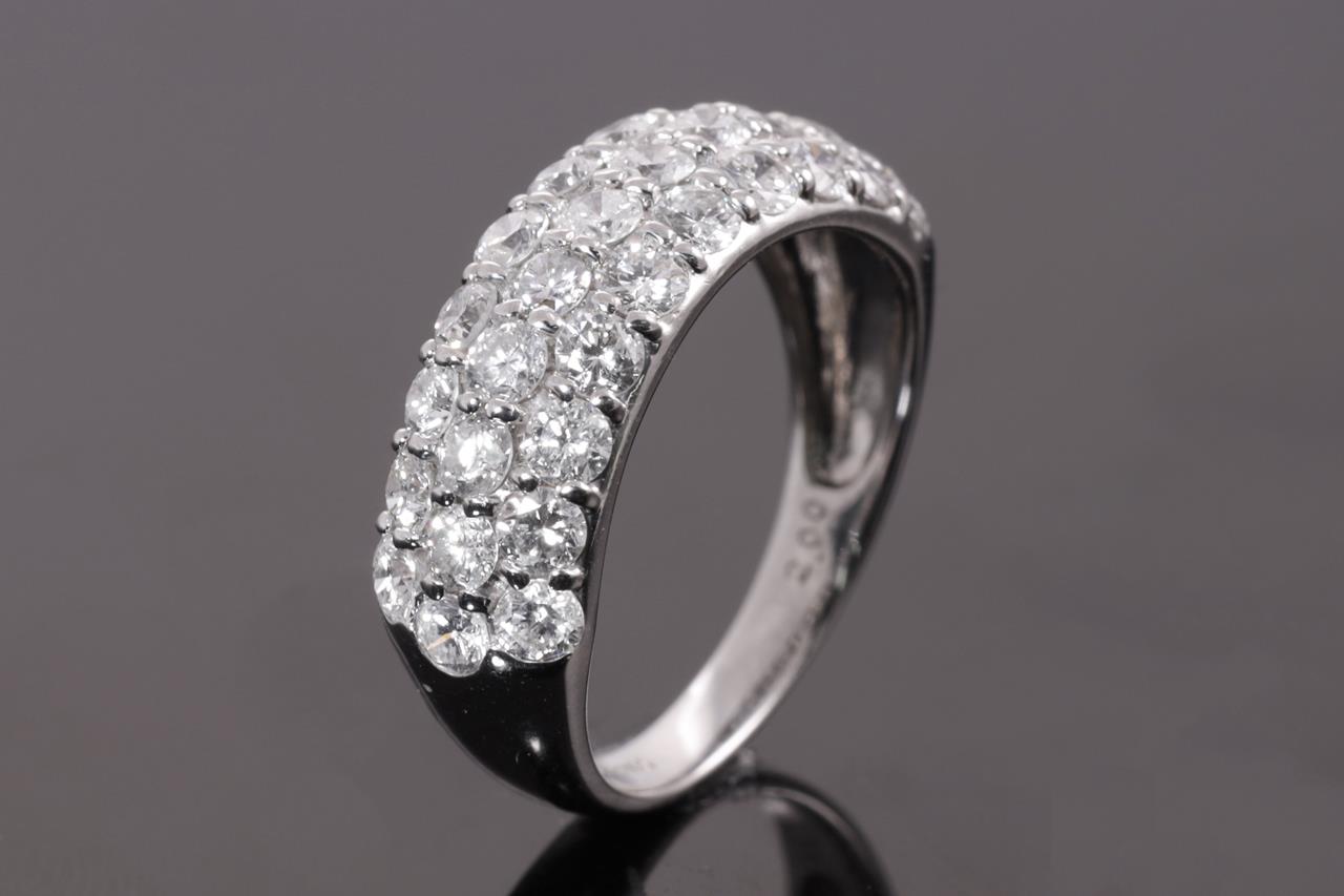 Diamond dress ring with round Diamonds totalling 2.00cts (Estimated grading: G SI-P1) 18ct white gold. Ring size: L - cannot be resized up, down with ring clip. Weight: 3.7g. (Pre-owned)