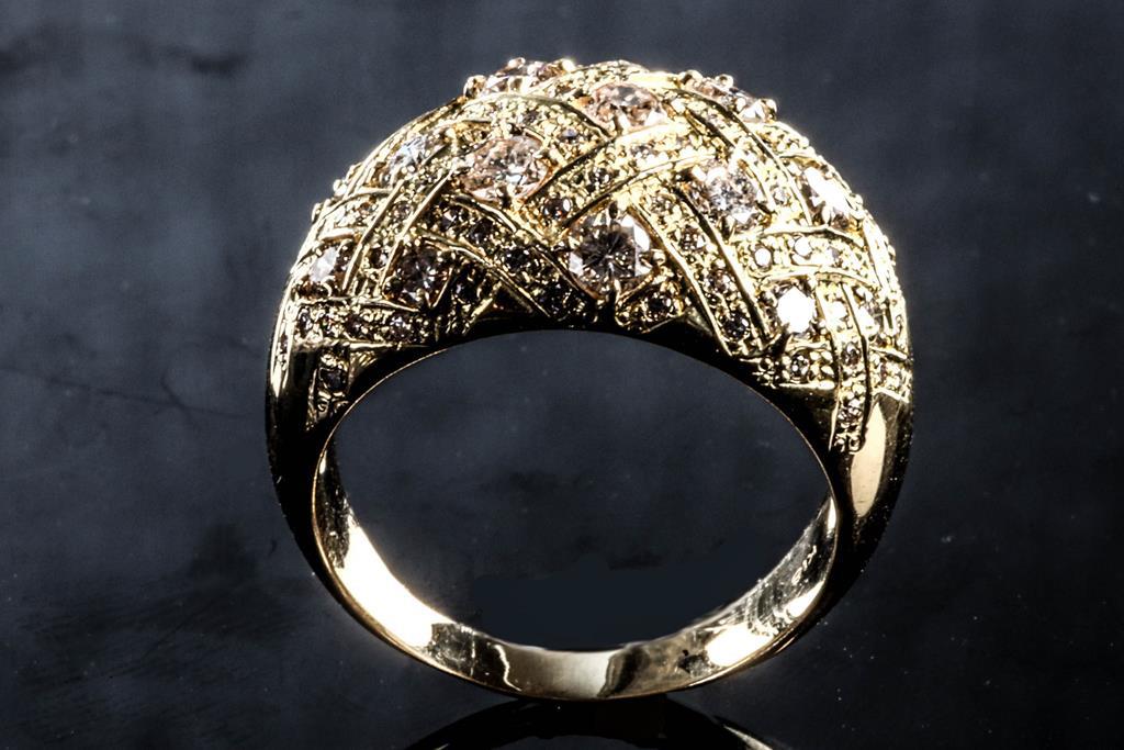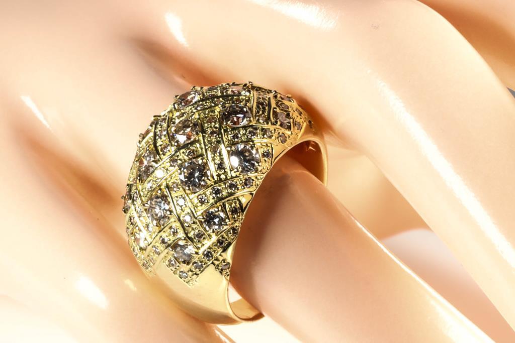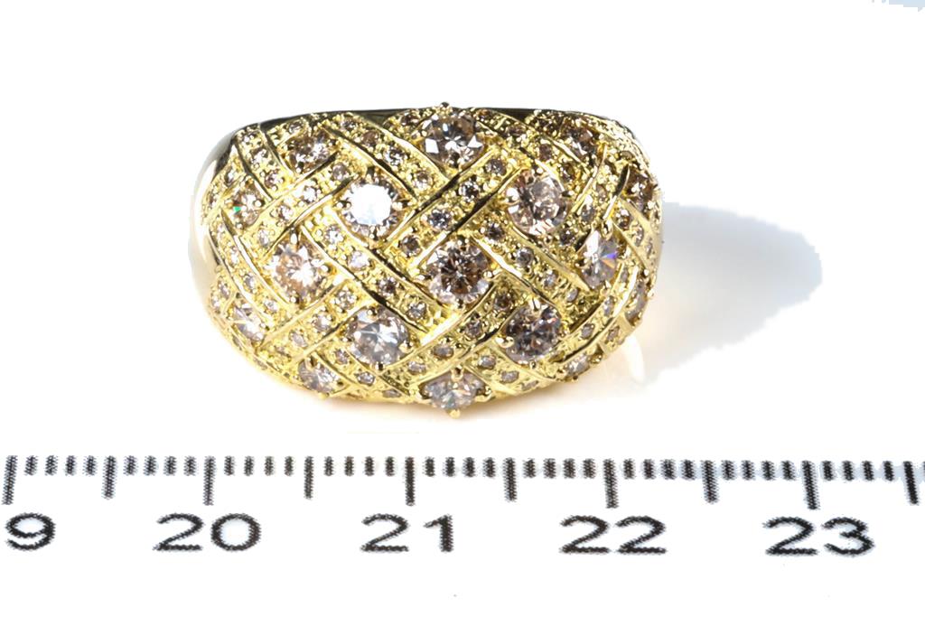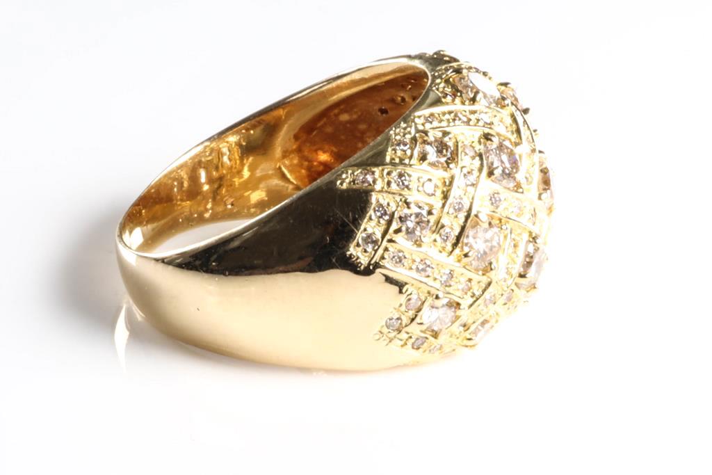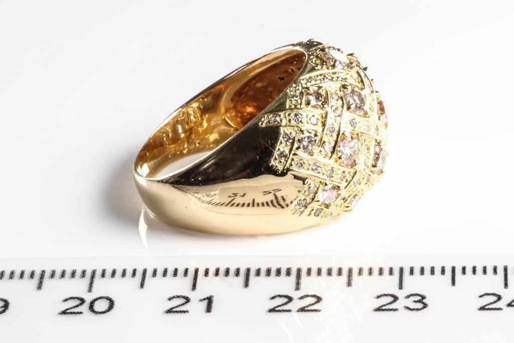 Diamond dress ring with round Diamonds totalling 2.00cts (Estimated grading: G-H SI-P1). 18ct yellow gold. Ring size: S1/2. Weight: 11.1g. (Pre-owned)