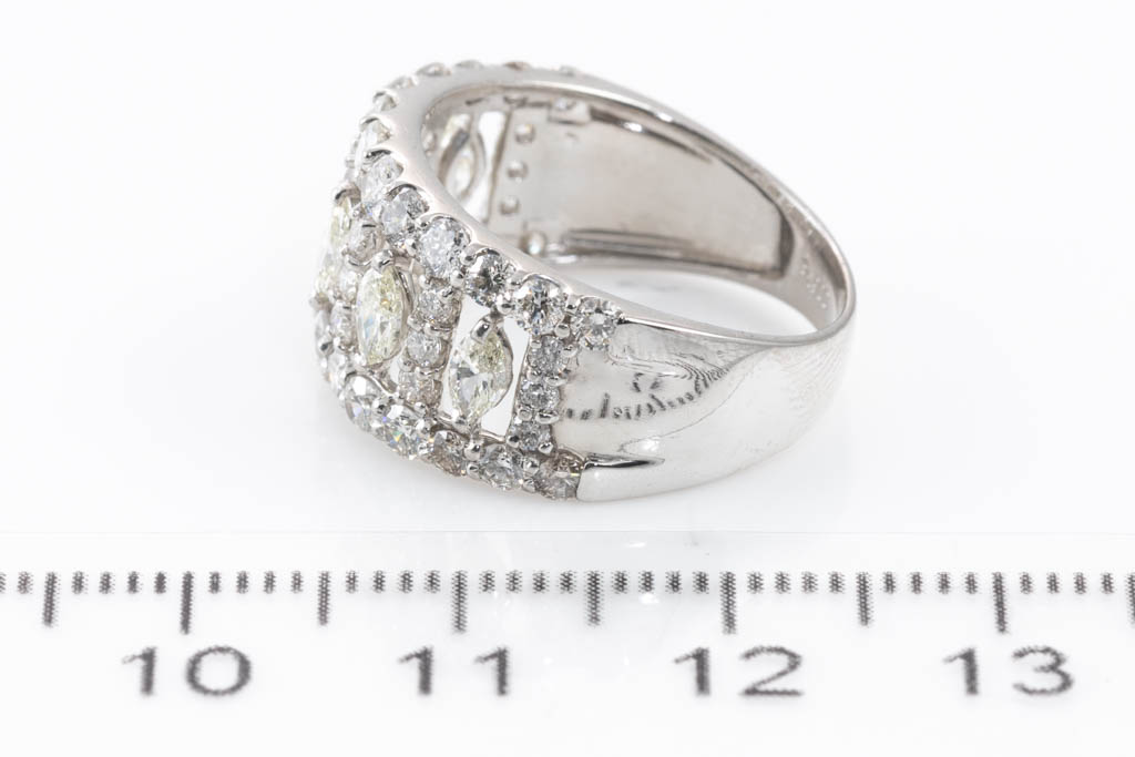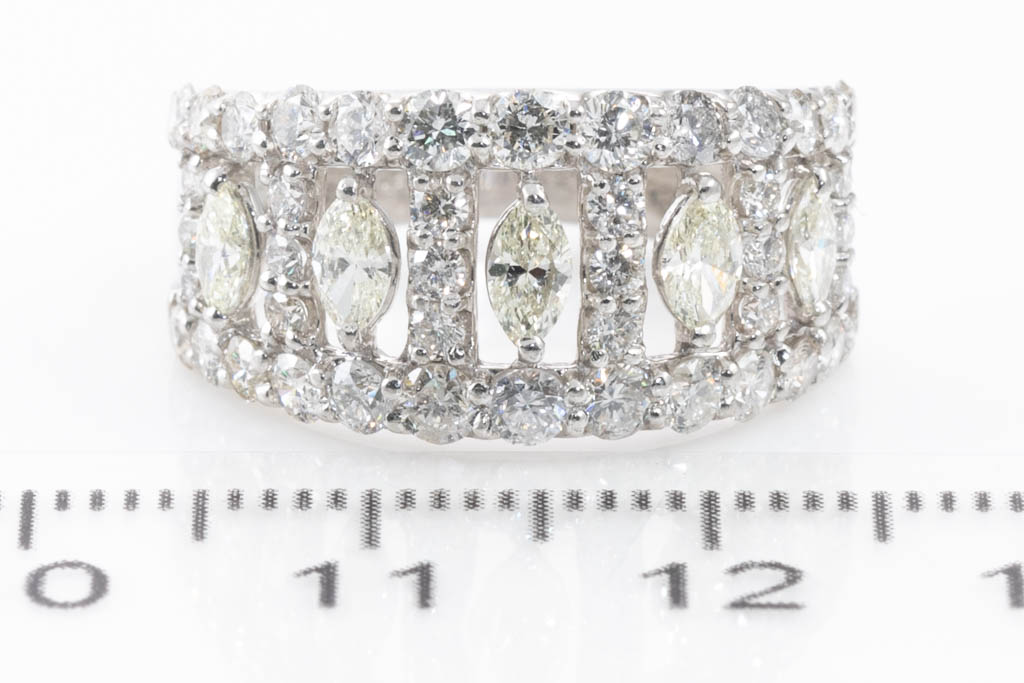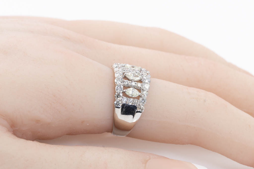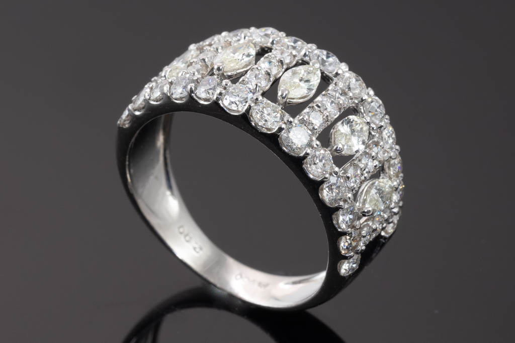 Diamond dress ring with round and marquise cut Diamonds totalling 2.00cts (Estimated grading: H-I & L-M SI). Platinum. Ring size N. Weight: 5.8g. (Pre-owned)