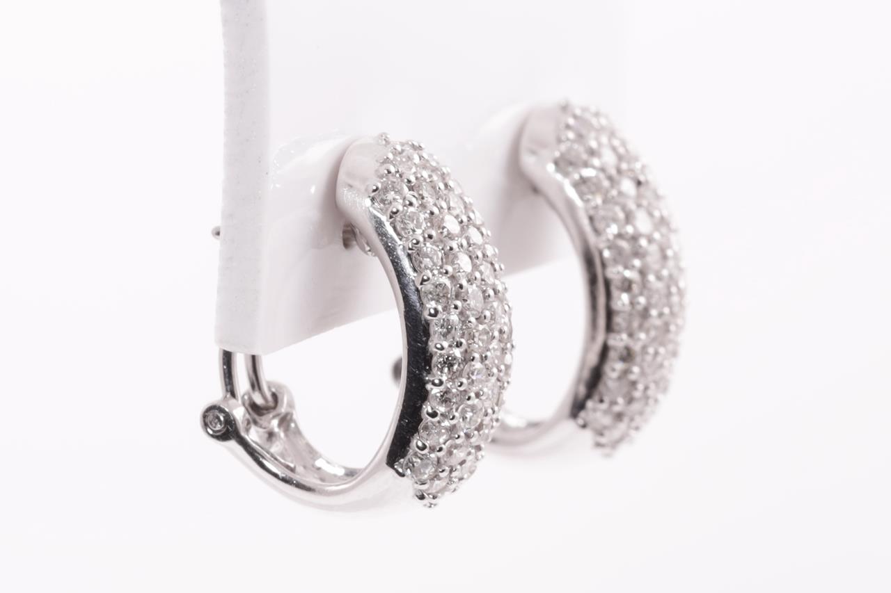 Diamond Clip-on earrings with round Diamonds totalling 2.00cts (Estimated grading: H SI). 18ct white gold. Weight: 7.5g (Pre-owned)