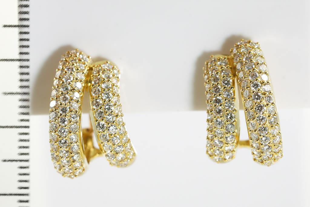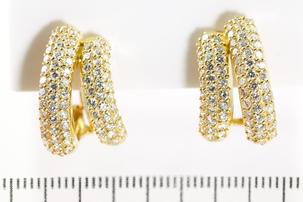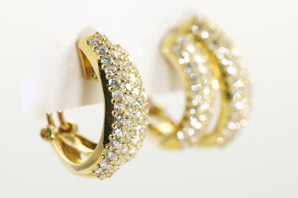 Diamond clip-on earrings (with foldable posts - for pierced and non pierced ears) with round Diamonds totalling 2.00cts (Estimated grading: H-I VS). 18ct yellow gold. Weight: 8.5g (Pre-owned)