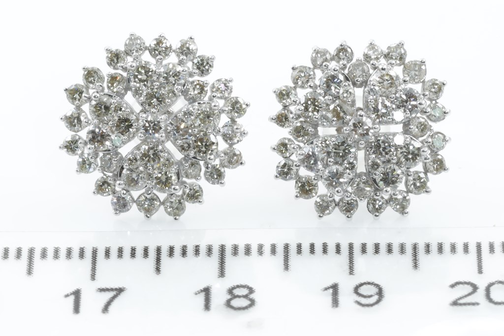 Diamond dress earrings with round Diamonds totalling 2.00cts (Estimated grading:L-M SI-P1). 18ct white gold with gold & silicon backs. Weight: 2.6g. (Pre-owned)
