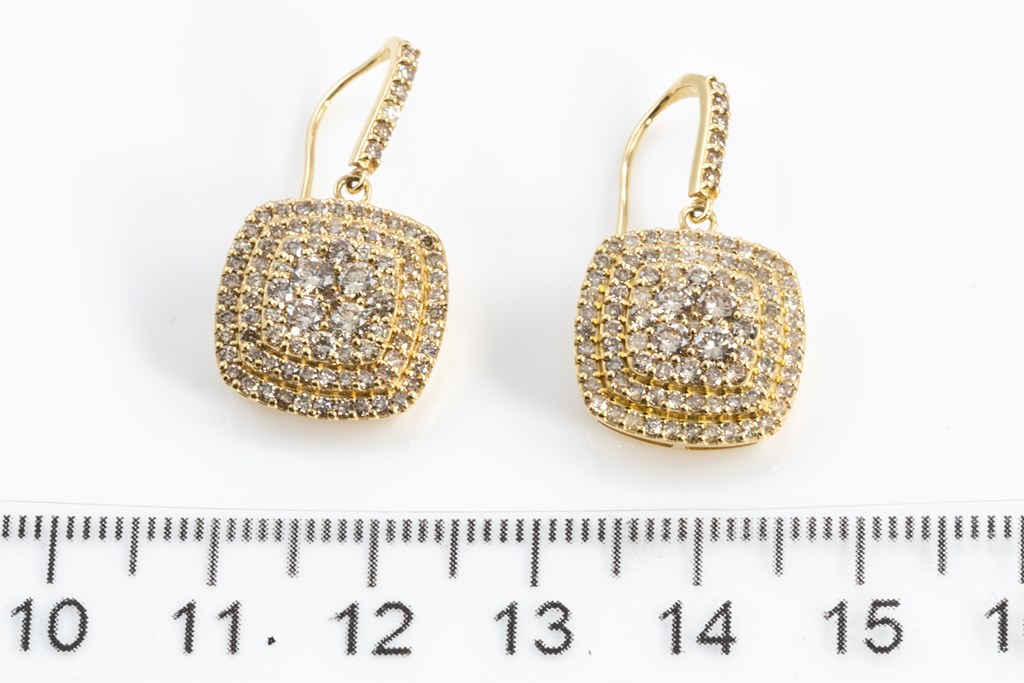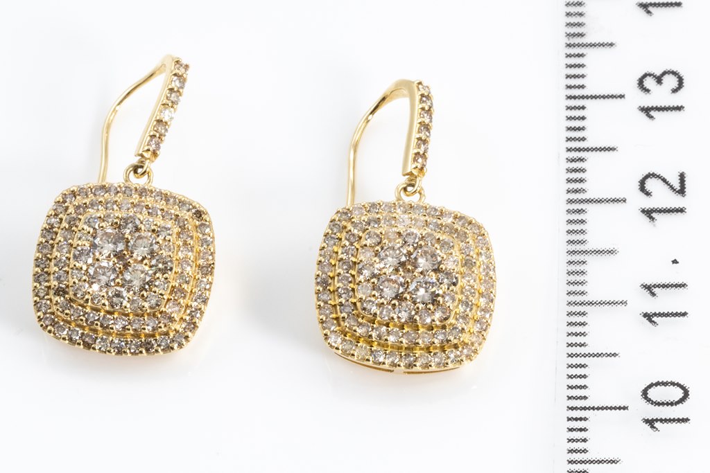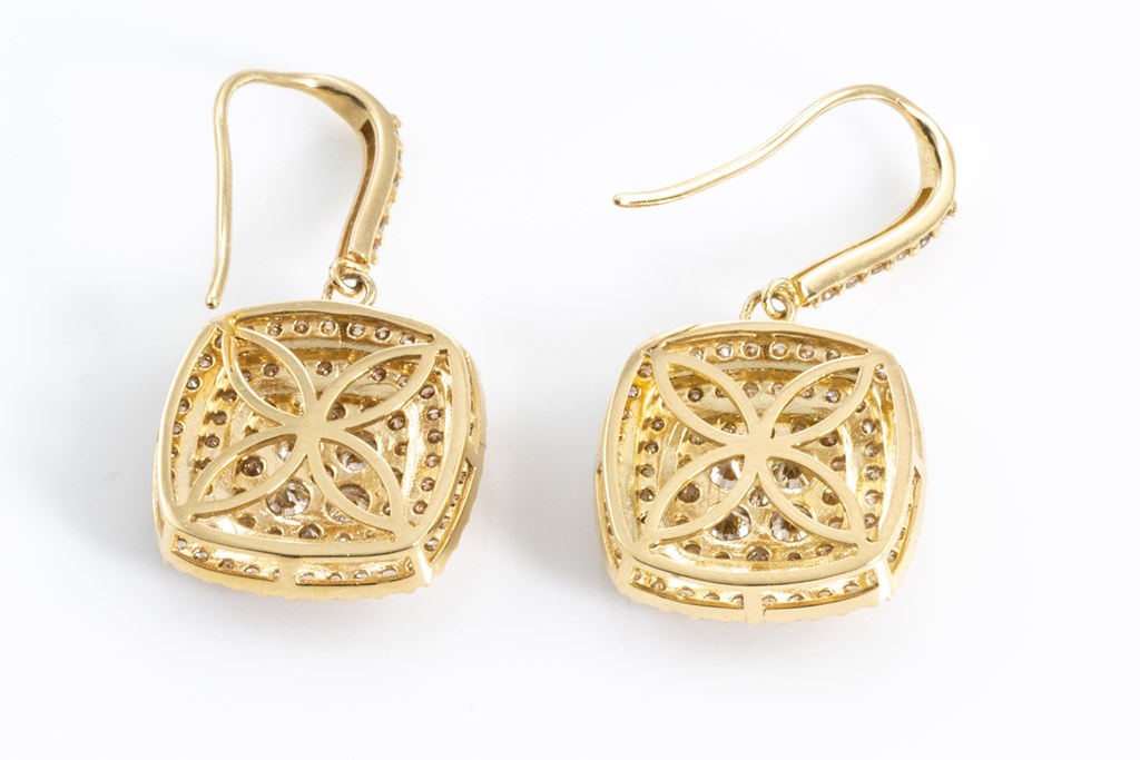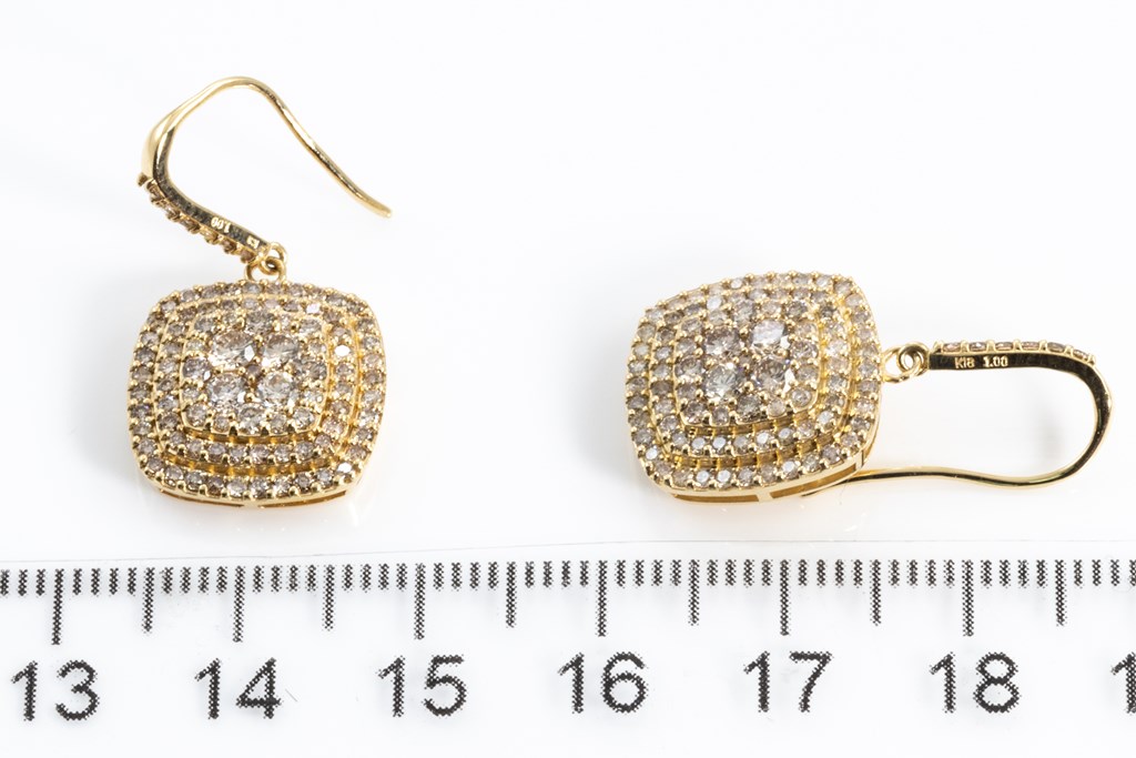 Diamond shepherds hook earrings with round Diamonds totalling 2.00cts (Estimated grading: J-K SI-P1). 18ct yellow gold. Weight: 4.9g. (Pre-owned)